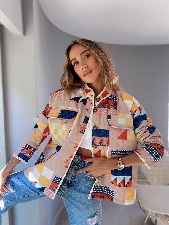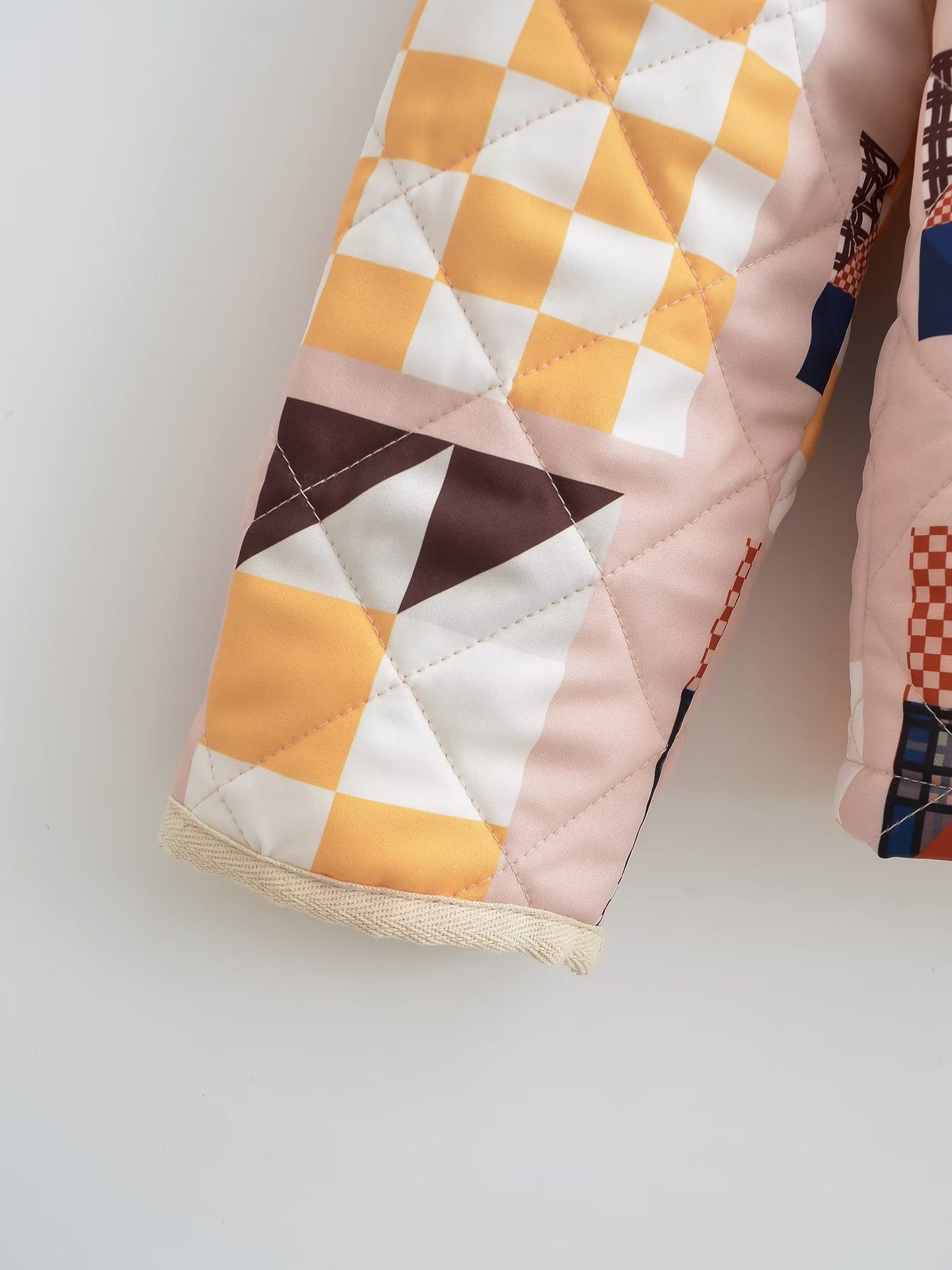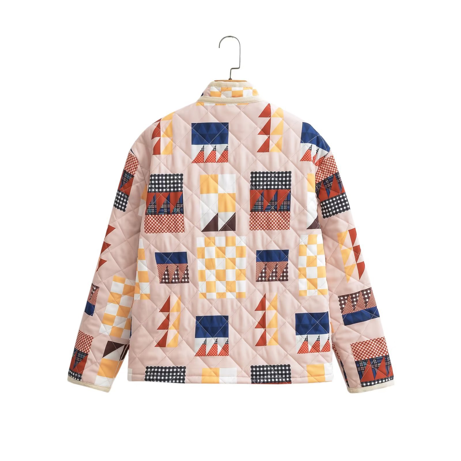 Diamond Lattice Pattern Print Cotton-padded Jacket Coat