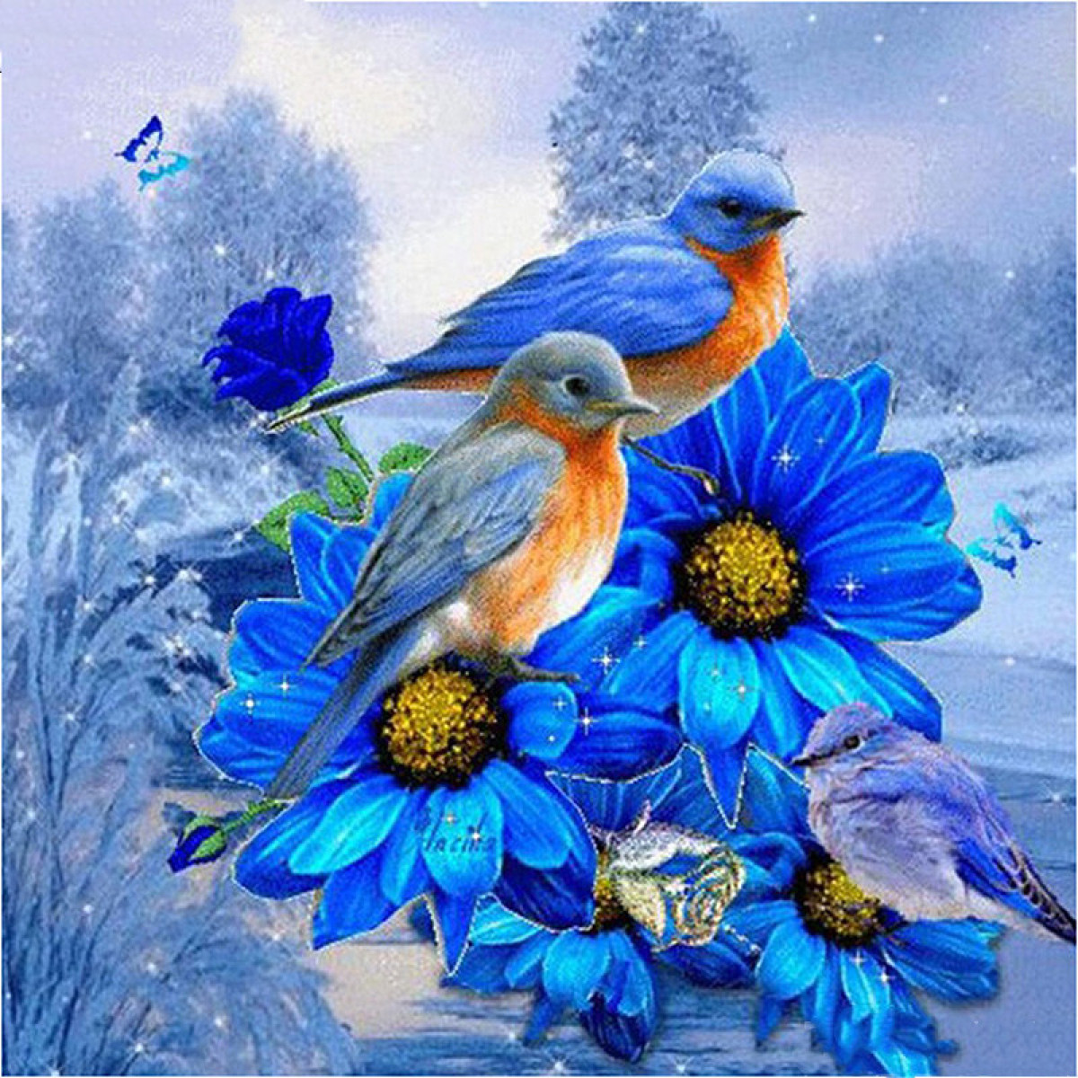 Diamond painting "Blue Flowers and Birds", DIY
