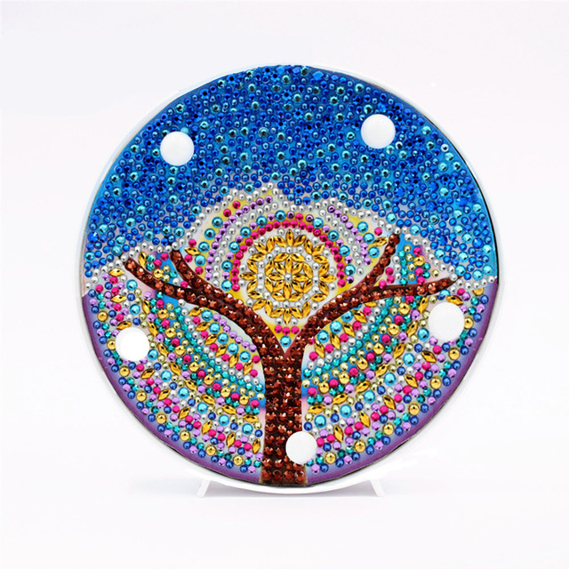 Kit display: Round paper canvas x1, plastic shell x1 (random color), small light string x1, plastic small shade x5, drill package x1, point drill pen x1, clay x1, point drill disc x1