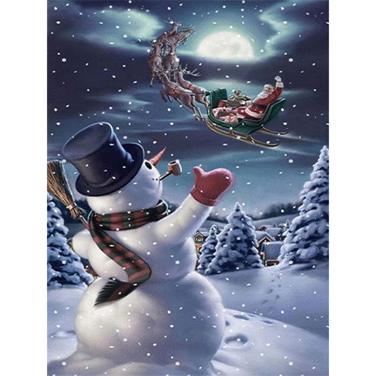 Diamond Painting Snowman Christmas Art Embroidery Night Snow Landscape