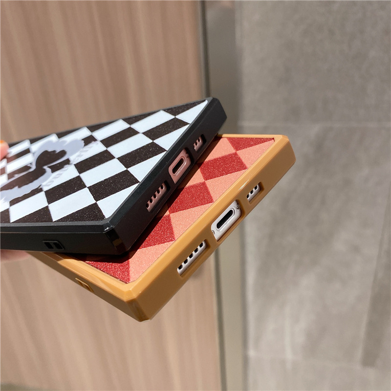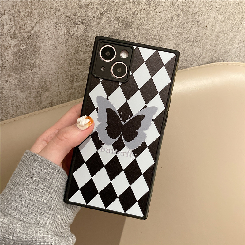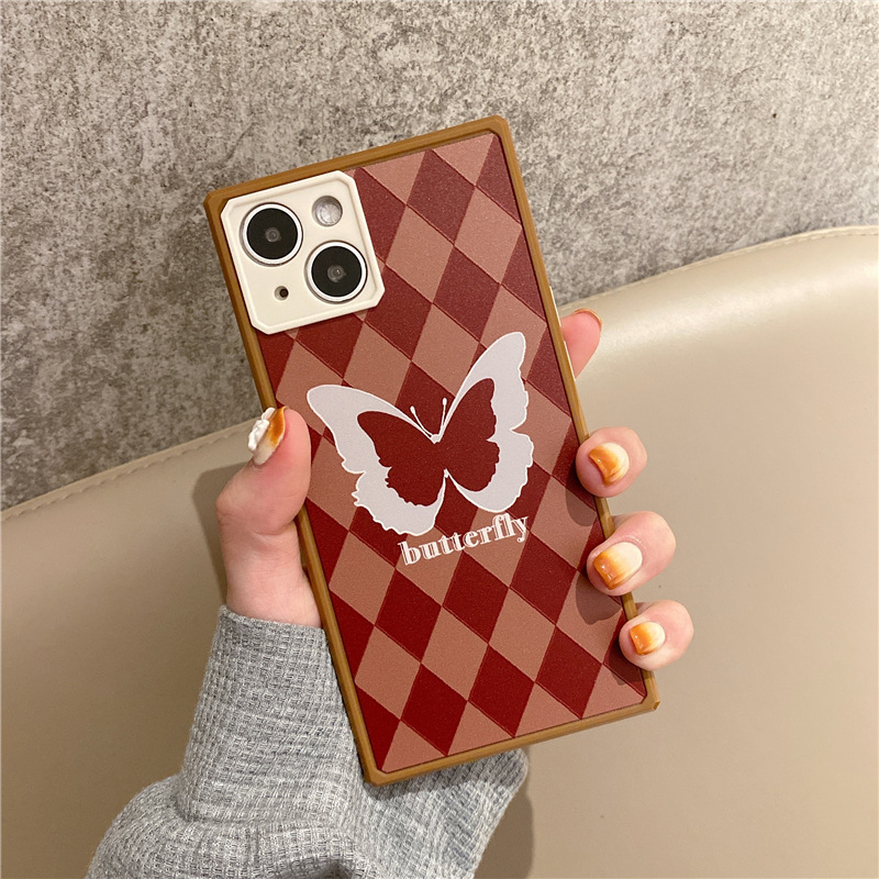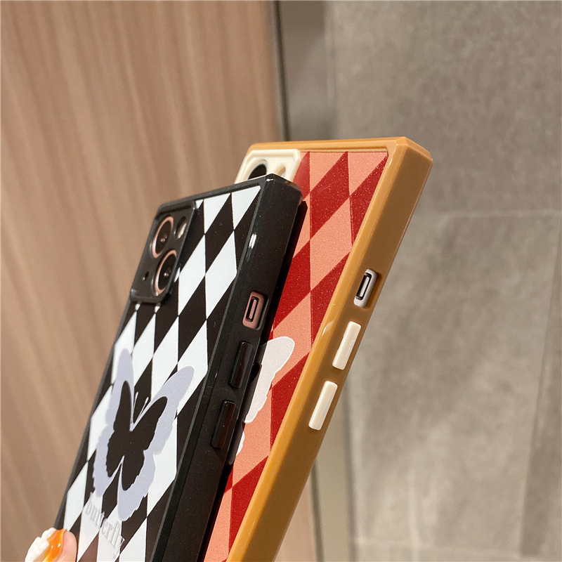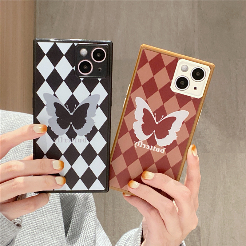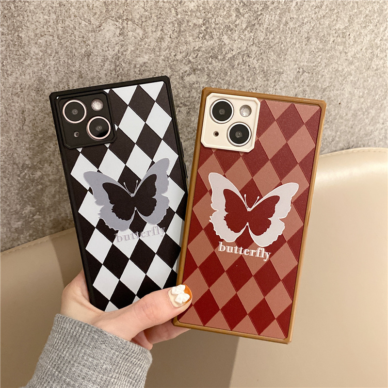 Diamond Pattern Butterfly Phone Case Square Straight Edge Fine Hole Soft