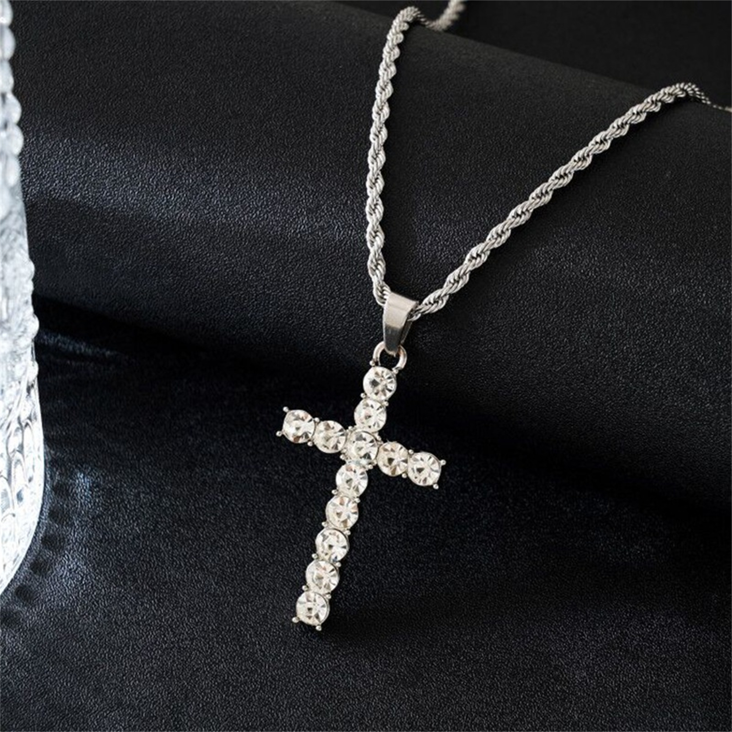 Color: 50CM silver twist chain cross, 60CM silver twist chain cross, 50cm gold twist chain cross, 60CM gold twist chain cross.