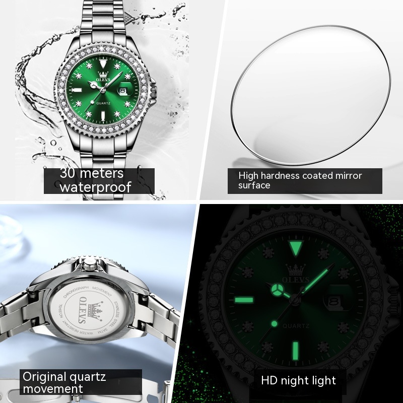 Color: Li 9945 steel belt white female, Li 9945 green leather Green female, Li 9945 steel belt green female