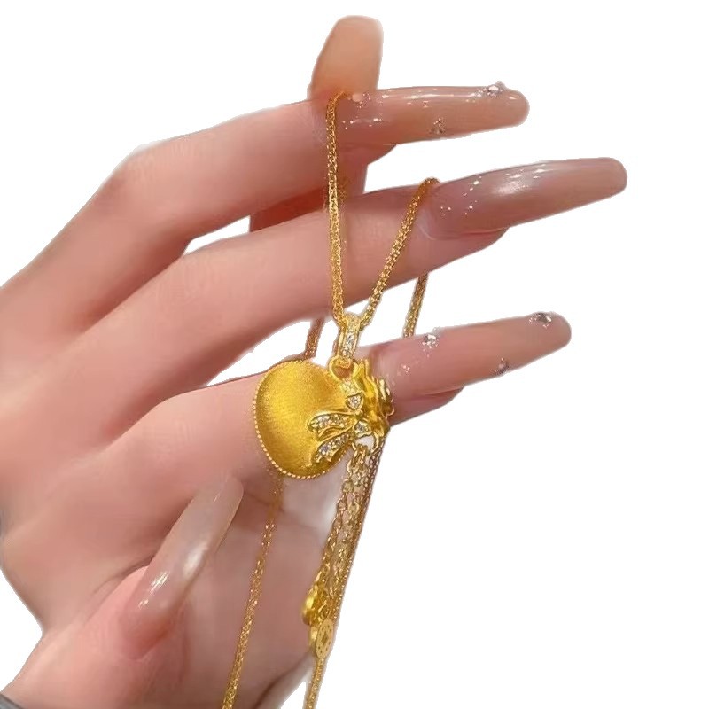 Style: LL Rhinestone Bowknot Fortune Bag Tassel Coin Necklace