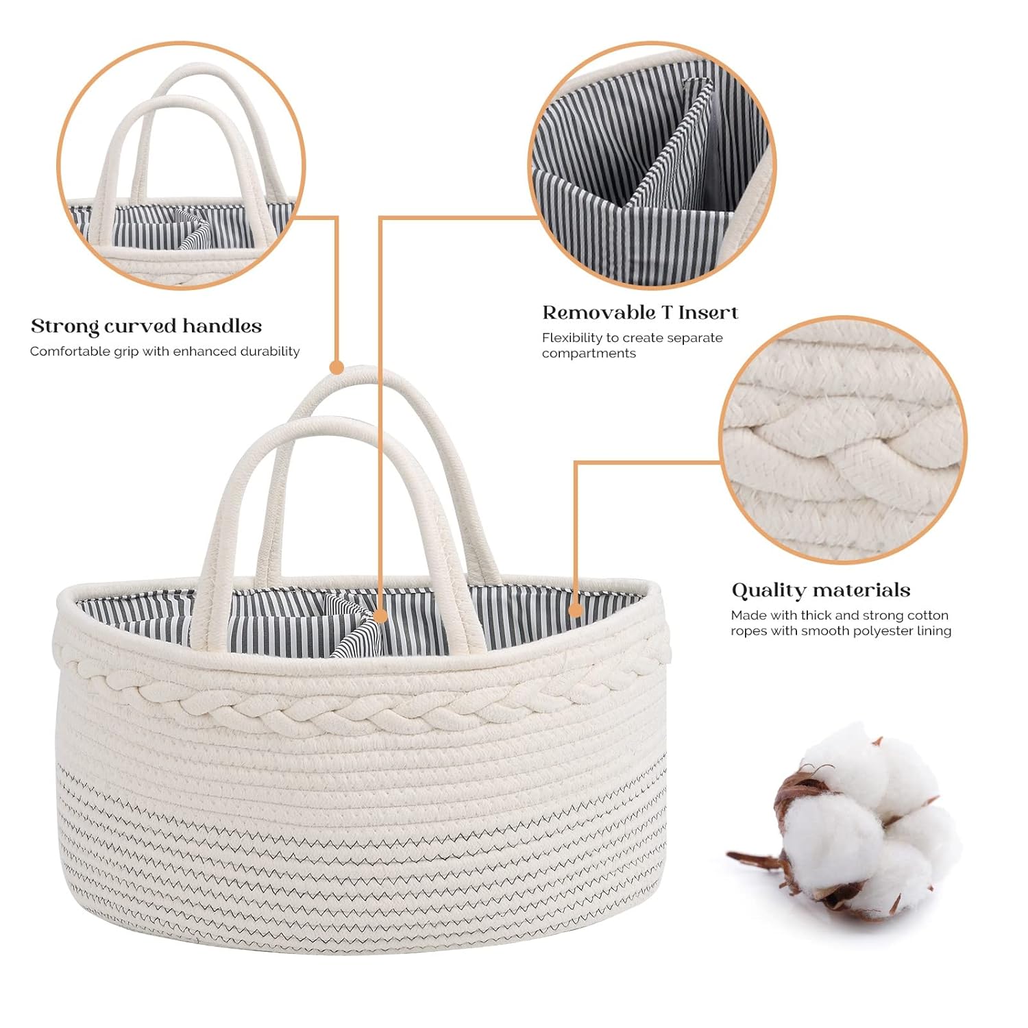 100% Cotton Rope Basket with Unisex Colors: The diaper organizer caddy is made from premium cotton rope that is skin-friendly and safe for your baby. It comes in unisex colors and is perfect for both baby girls and boys