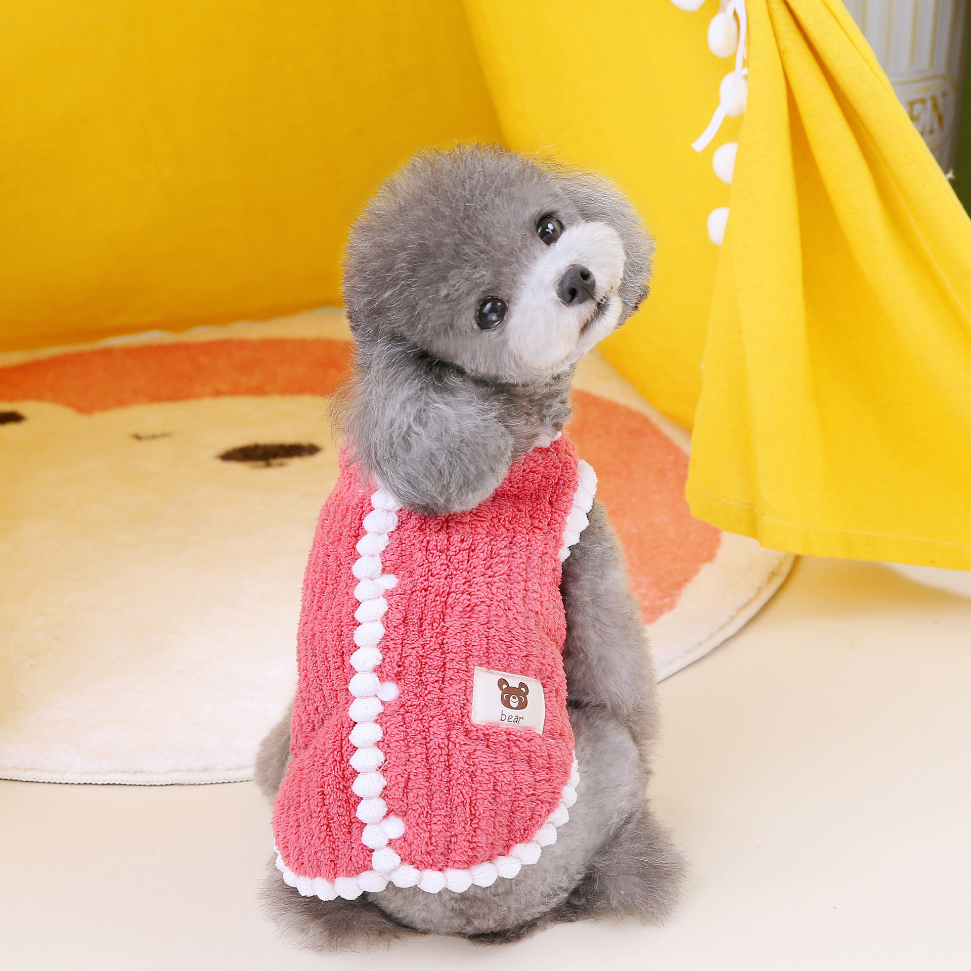 Color: XD vertical stripe fleece trimmed fleece clothing - brown, XD vertical stripe fleece trimmed fleece clothing - watermelon red, XD vertical stripe fleece trimmed fleece clothing - yellow