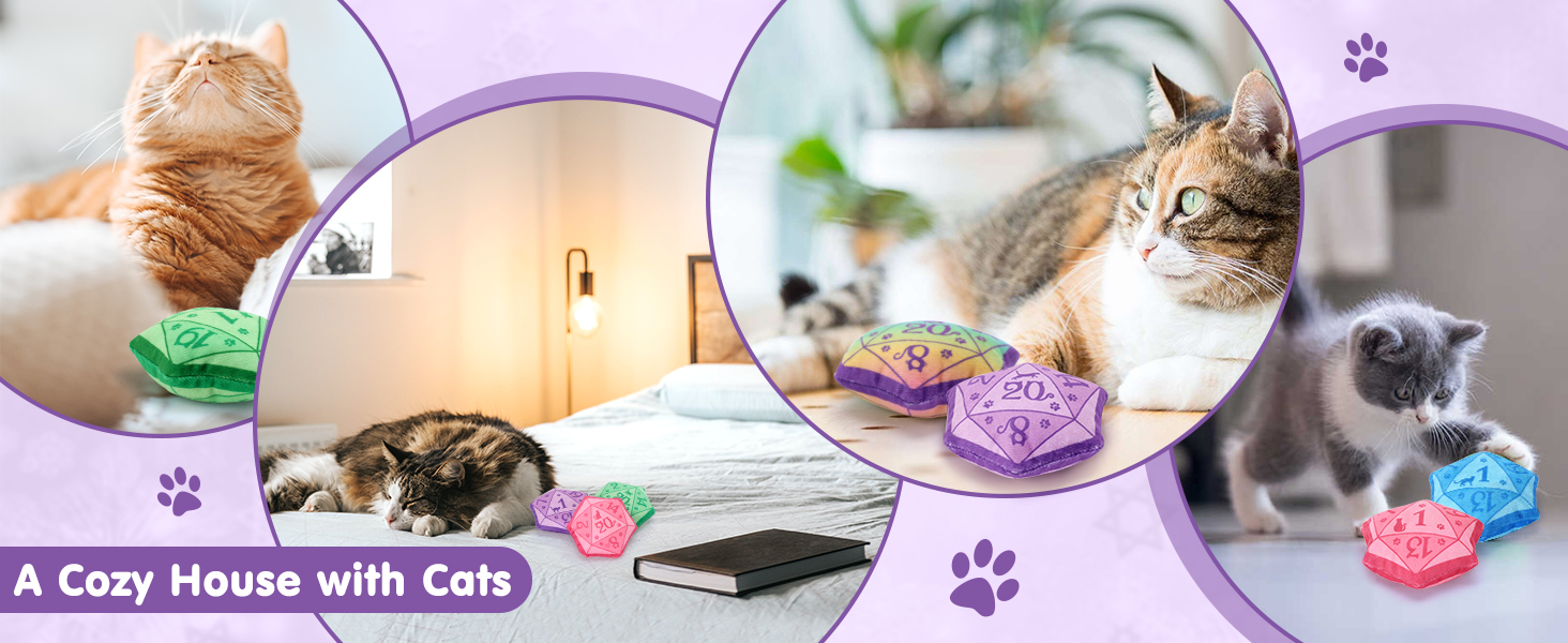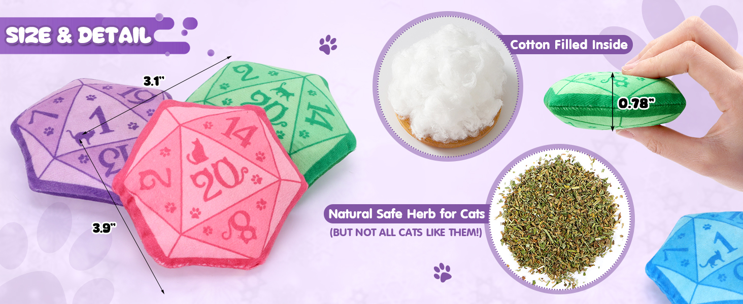 Dice Catnip Toy DND Interactive Cat Toy For Role Playing Tabletop Game Soft Plush Catmint Kitten Teething Chew Pet Supplies Cat Lover Witchy Wizard Gift Ideas