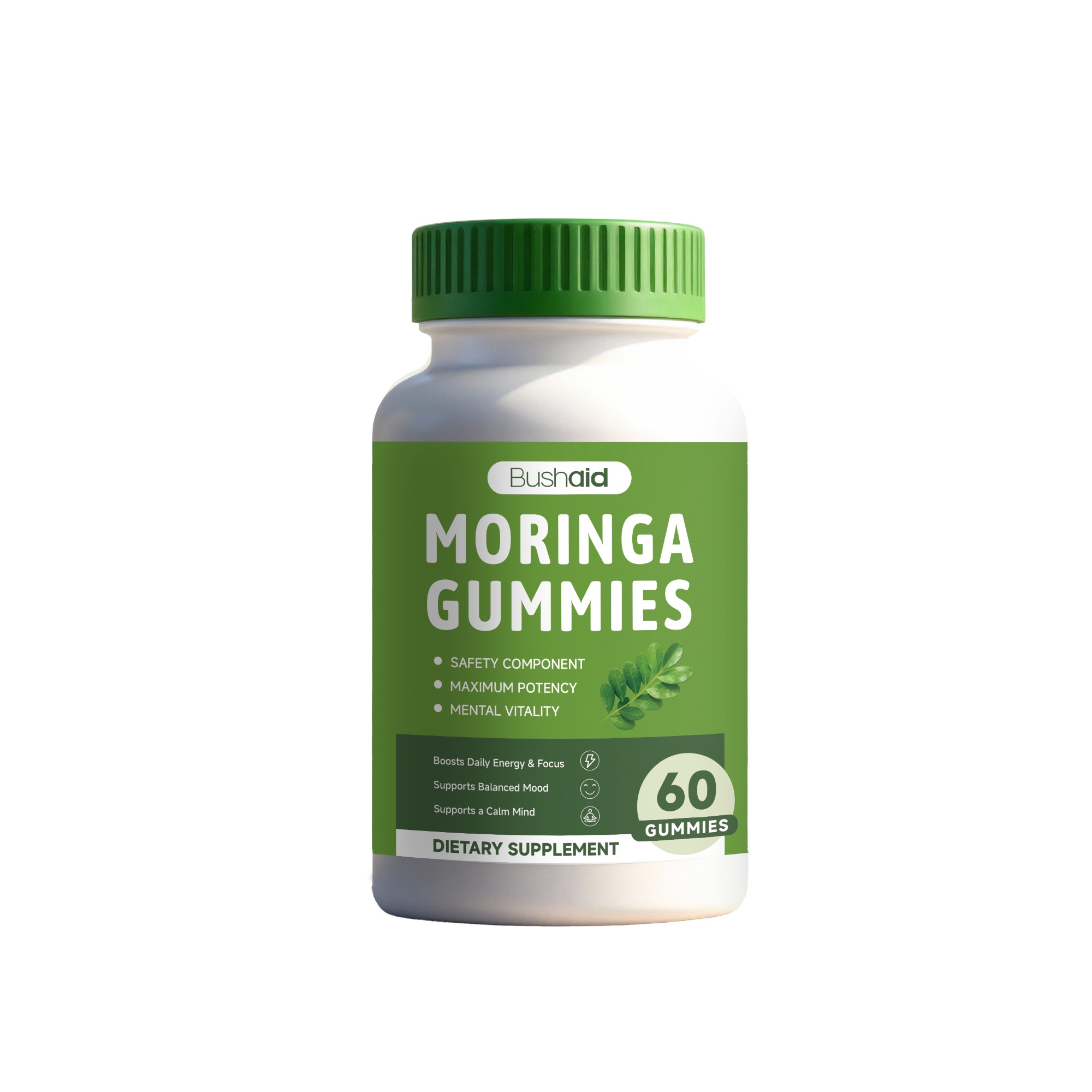 Ingredients: Moringa leaf extract, quercetin, iron, magnesium, potassium, vitamin E, vitamin D3, calcium.