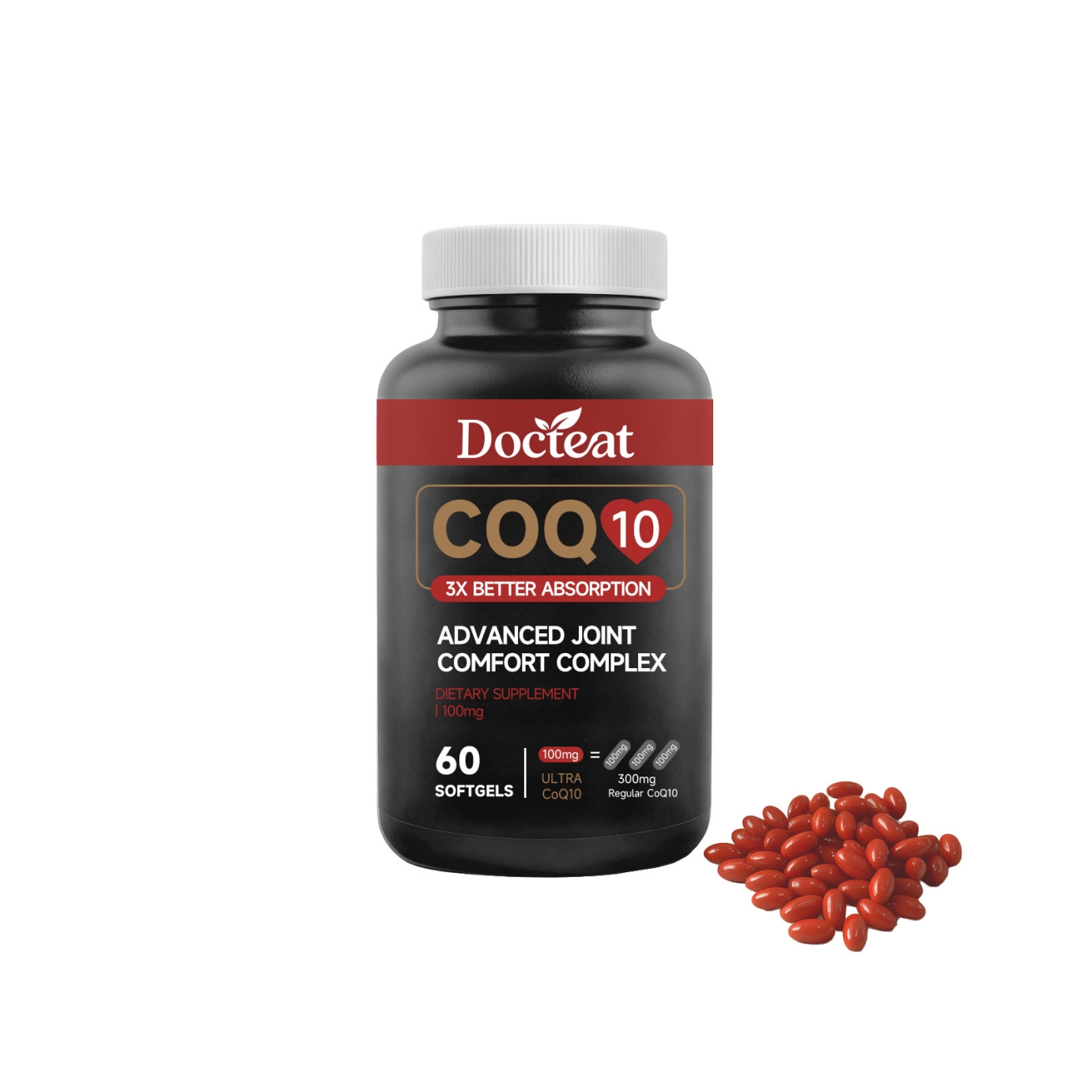 Ingredients: vitamin C, vitamin B7, coenzyme Q10, glucosamine sulfate, chondroitin sulfate, dimethyl sulfone (MSM), ginger root extract.