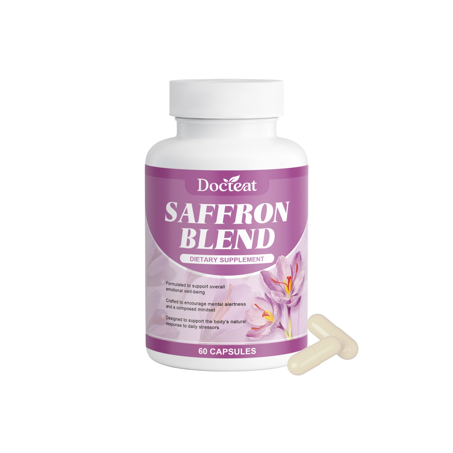 Ingredients: saffron extract, L- theanine, rhodiola root extract, vitamin B6, magnesium, ginger root extract and black pepper extract.