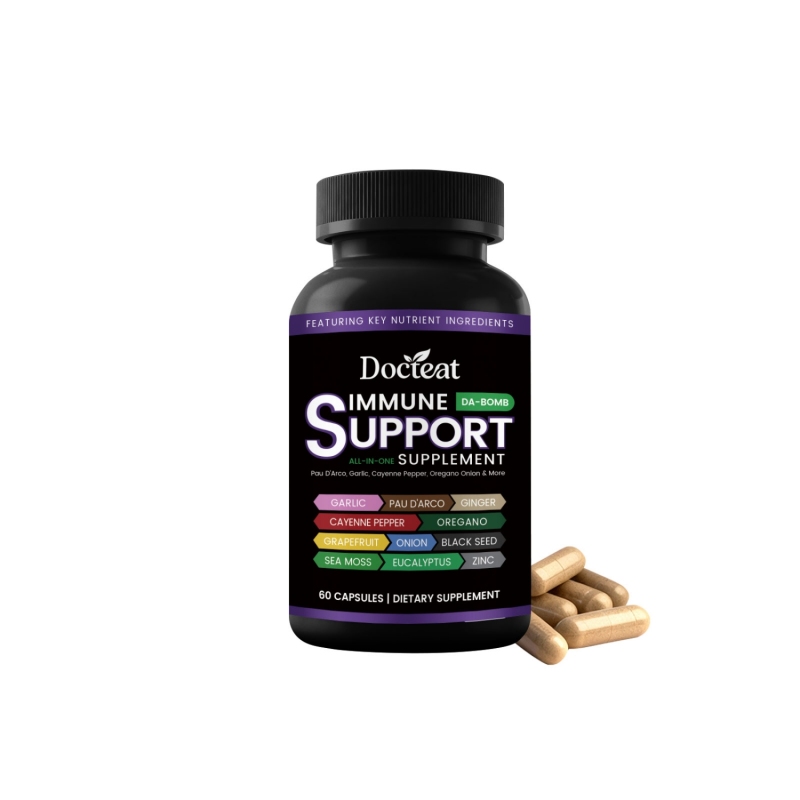 Ingredients: vitamin C, vitamin D3, zinc, Echinacea purpurea, garlic extract, ginger root, oregano oil, black seed oil, seaweed, pepper, onion, grapefruit and eucalyptus.