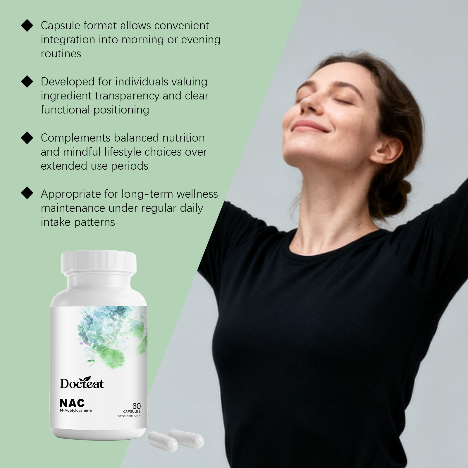 Product information:Ingredients: N- acetylcysteine (NAC)