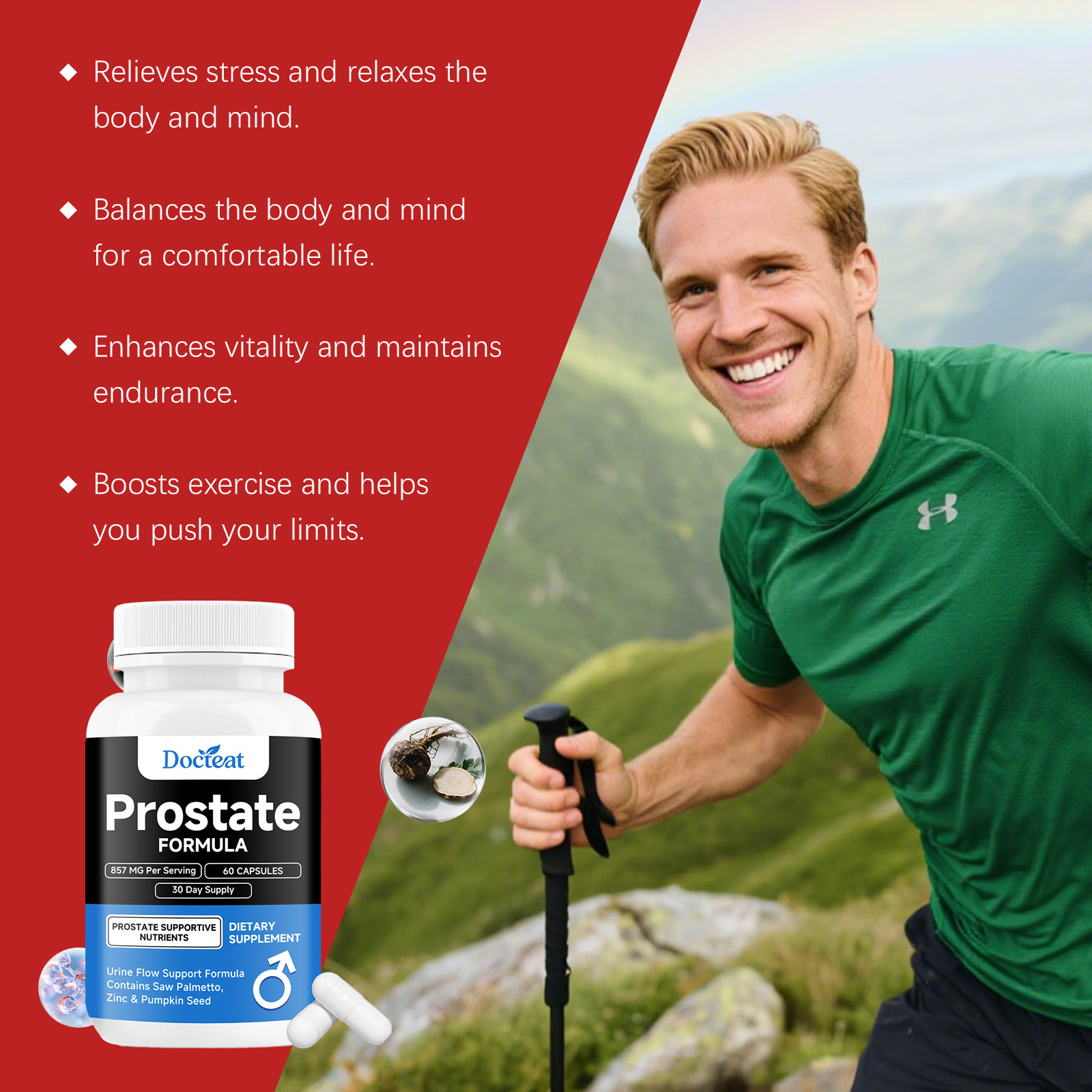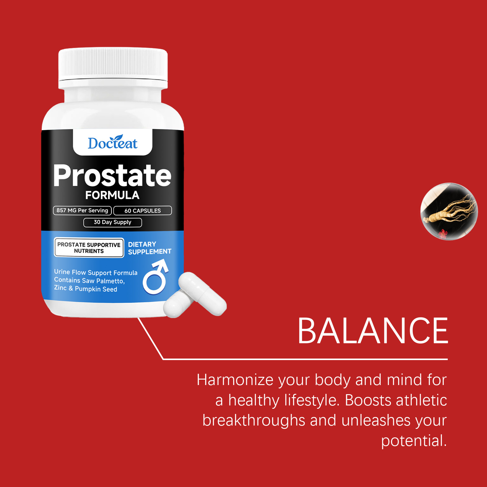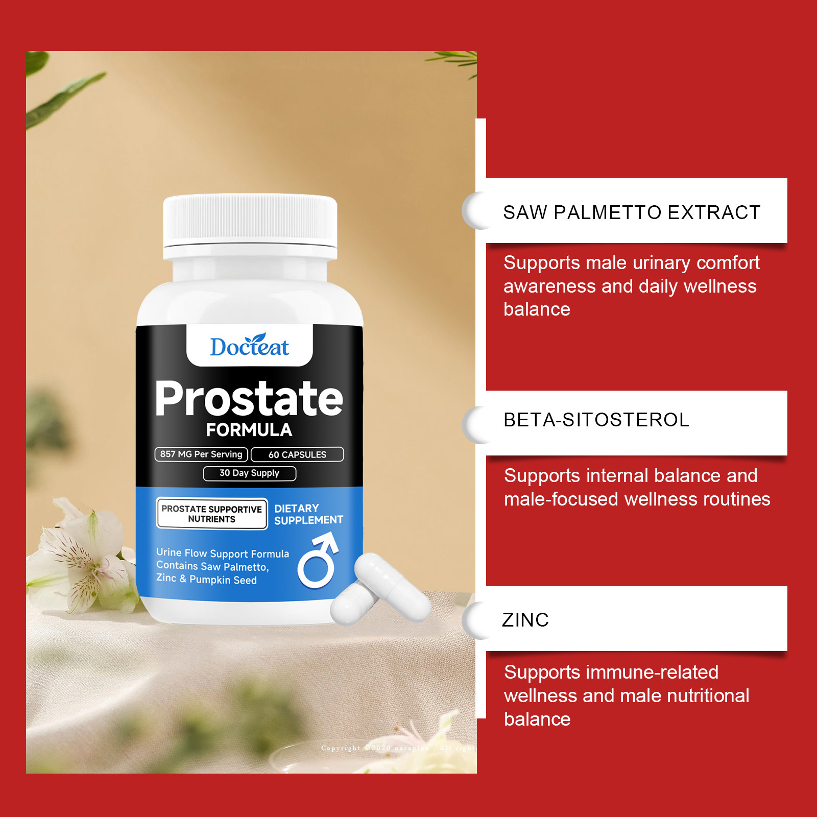Ingredients: vitamin D3, zinc, saw palm extract, β-sitosterol, green tea extract, pumpkin seed oil powder, Ganoderma lucidum extract, black pepper extract, African thorn plum bark extract, nettle root extract, lycopene.