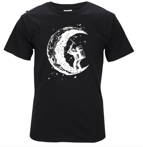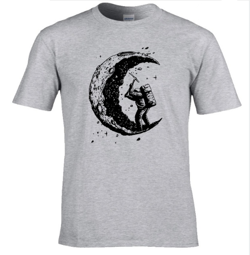 Digging The Moon Print Casual Mens O-neck T Shirts Fashion Men's Tops Men T-shirt Short Sleeve Men Tshirt