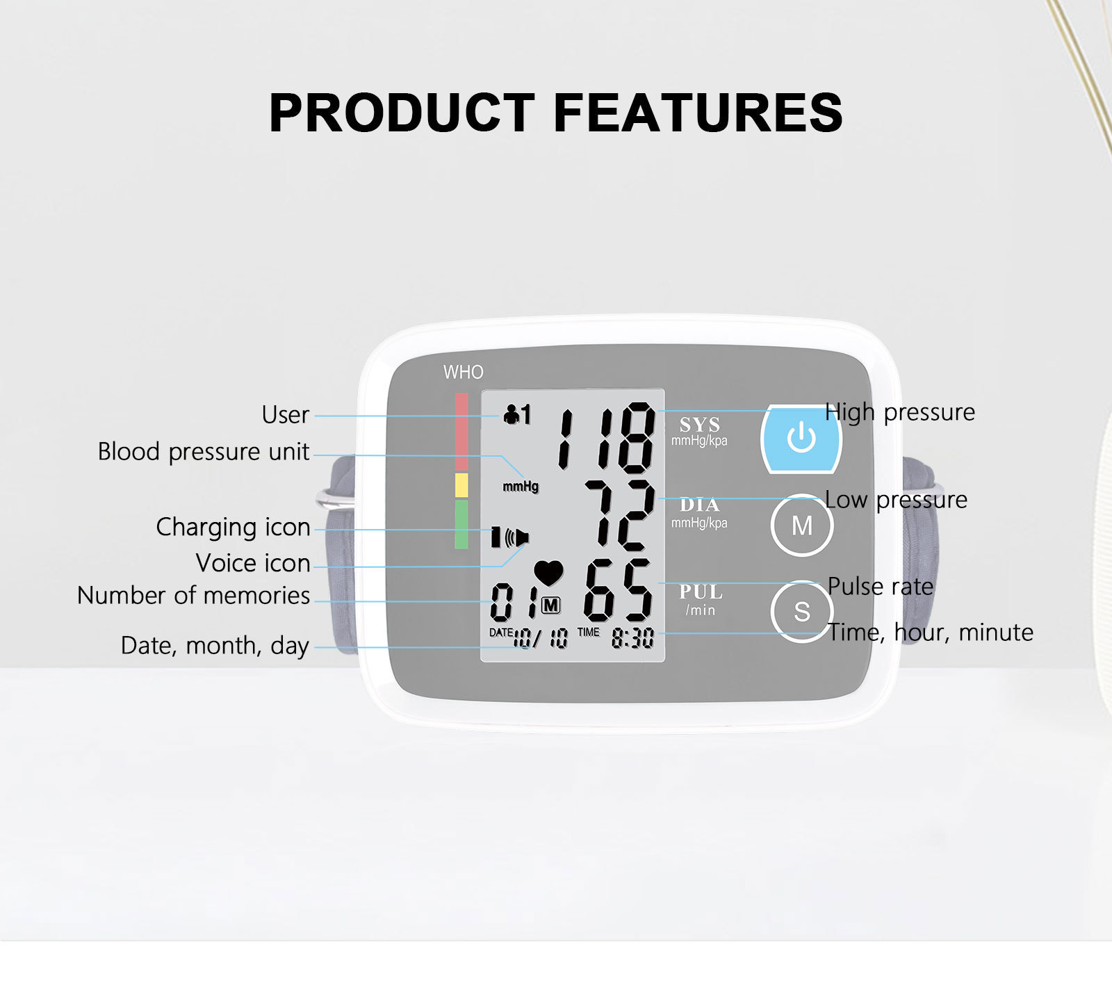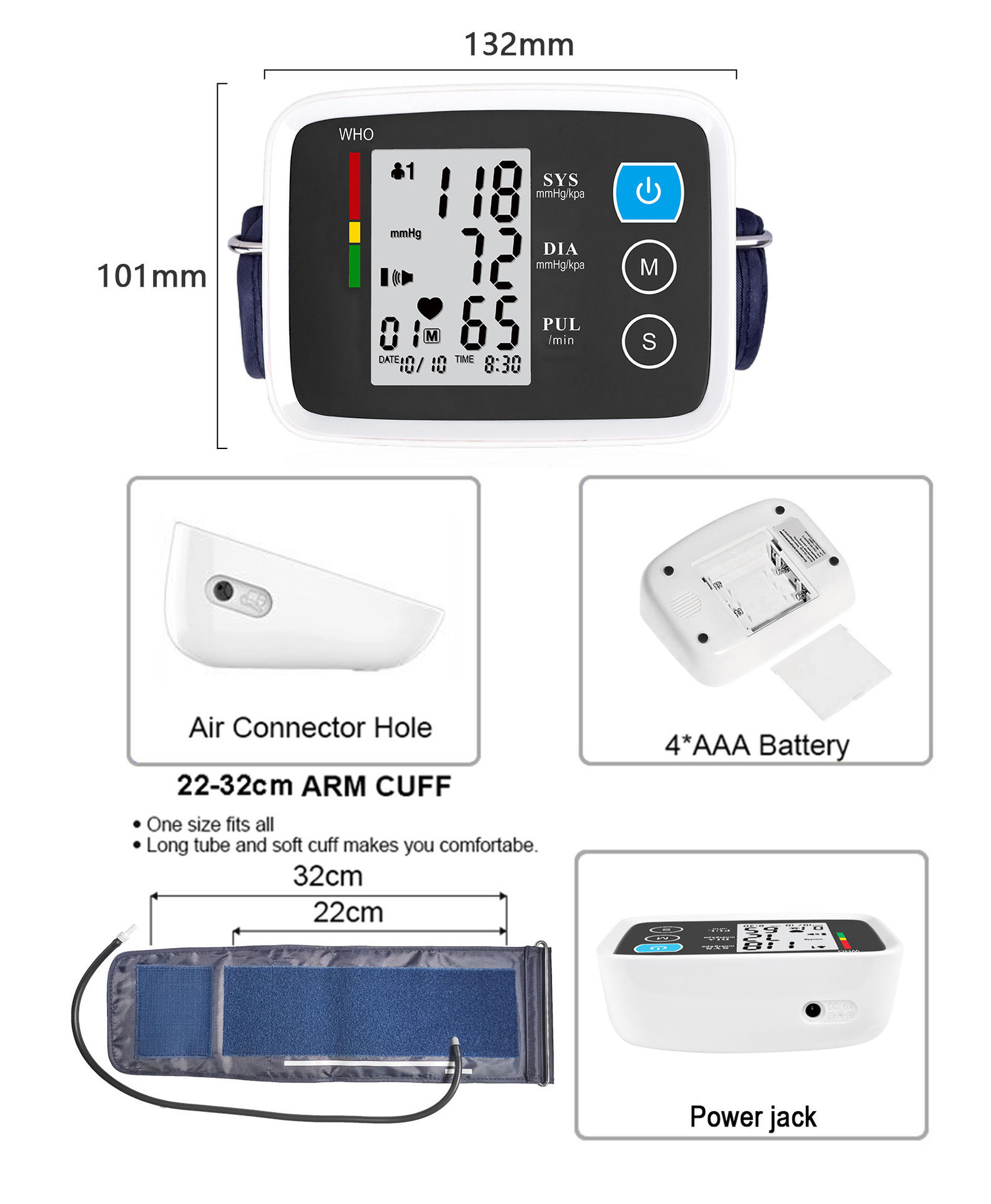 Digital Arm Blood Pressure Test Kit Cuff Sensor Monitor BP Automatic Pressure Tonometer Tensiometer Heart Rate Pulse Meter