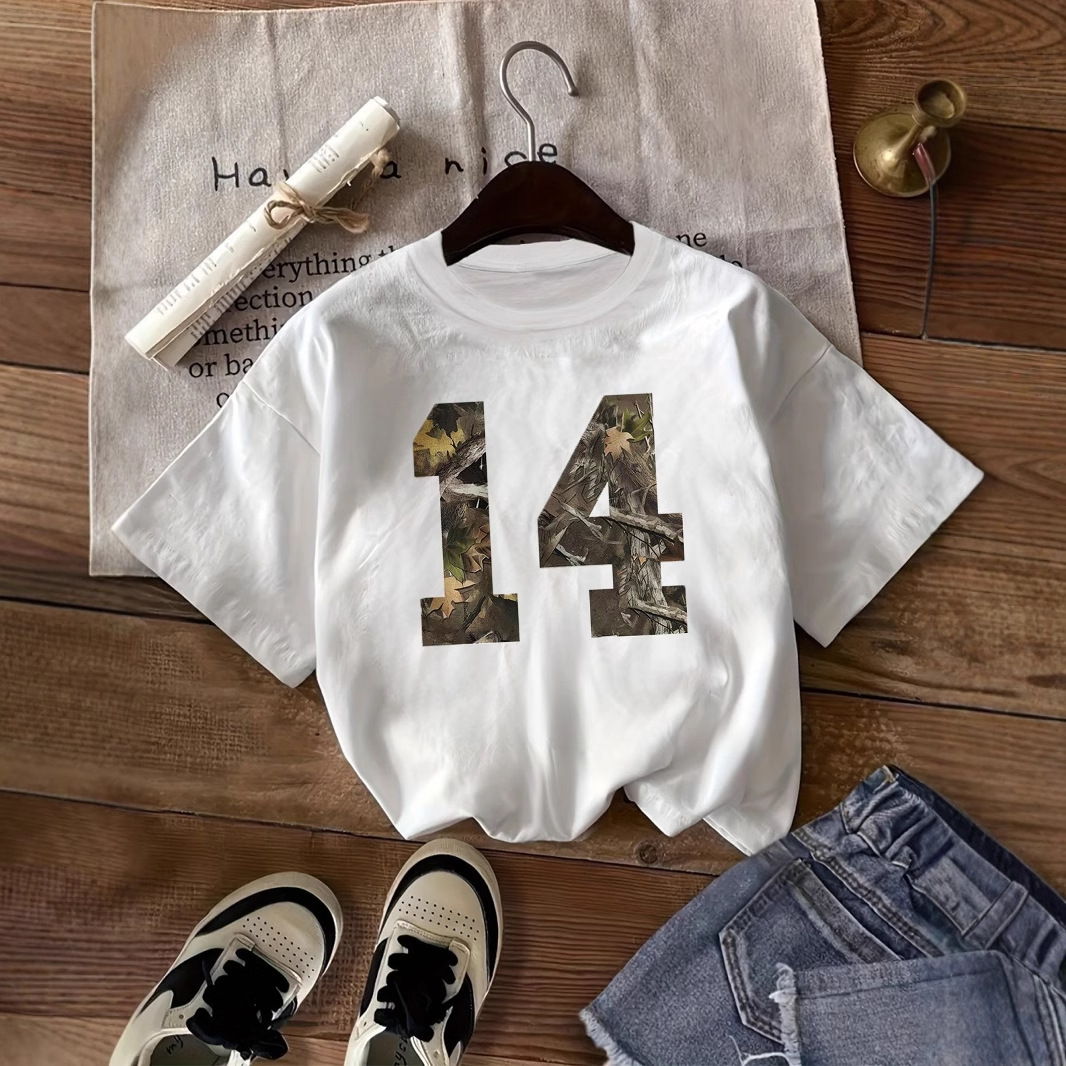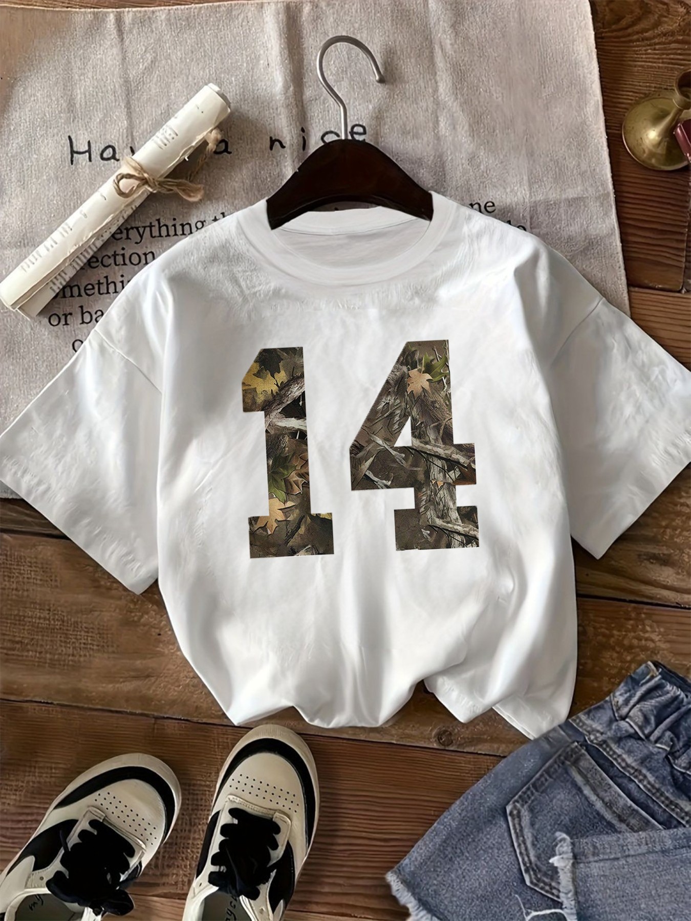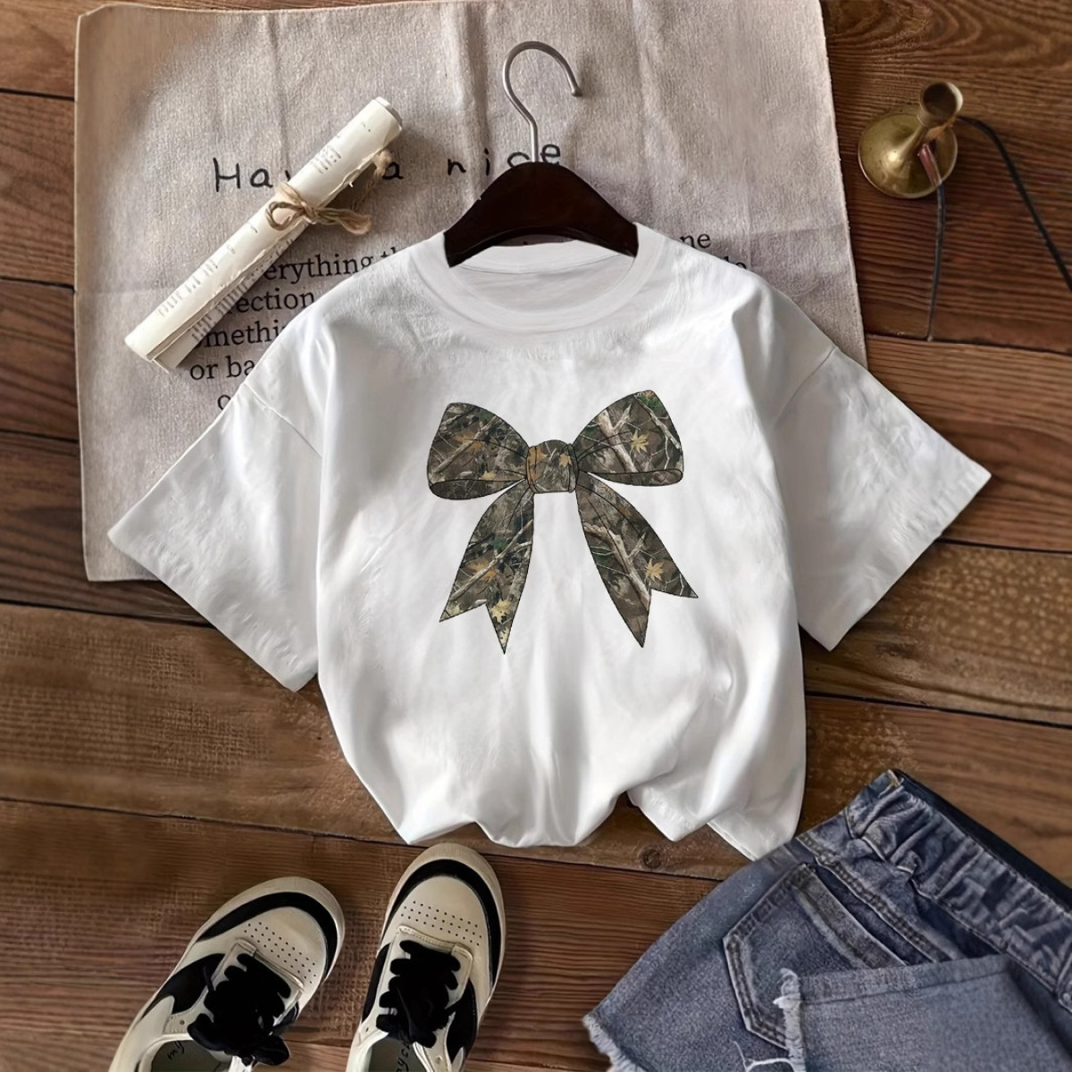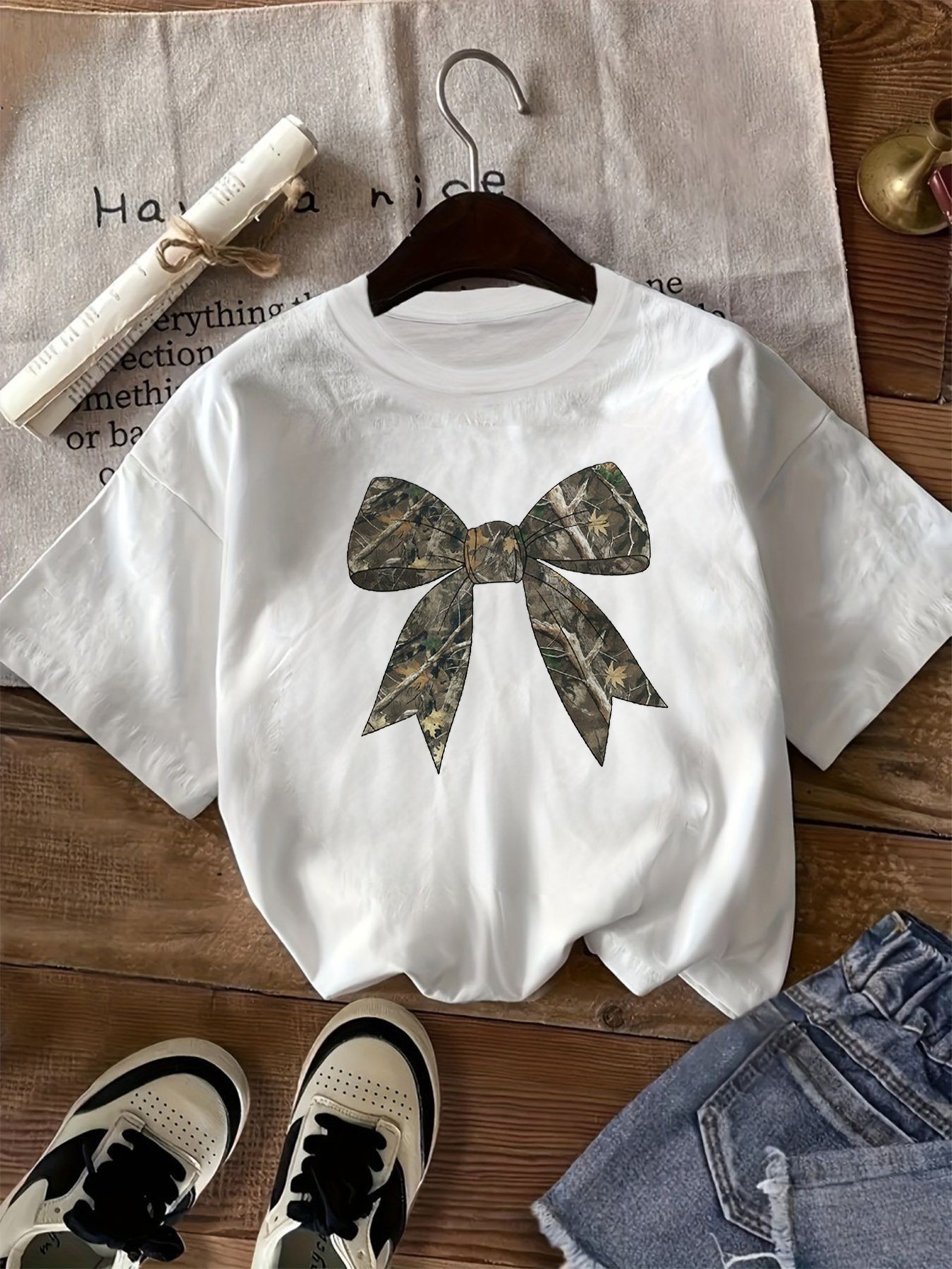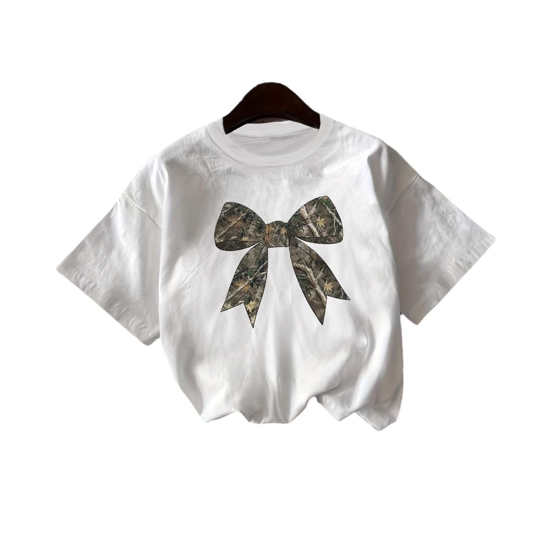 Digital Bow-tie American Retro Loose Short-sleeve Top