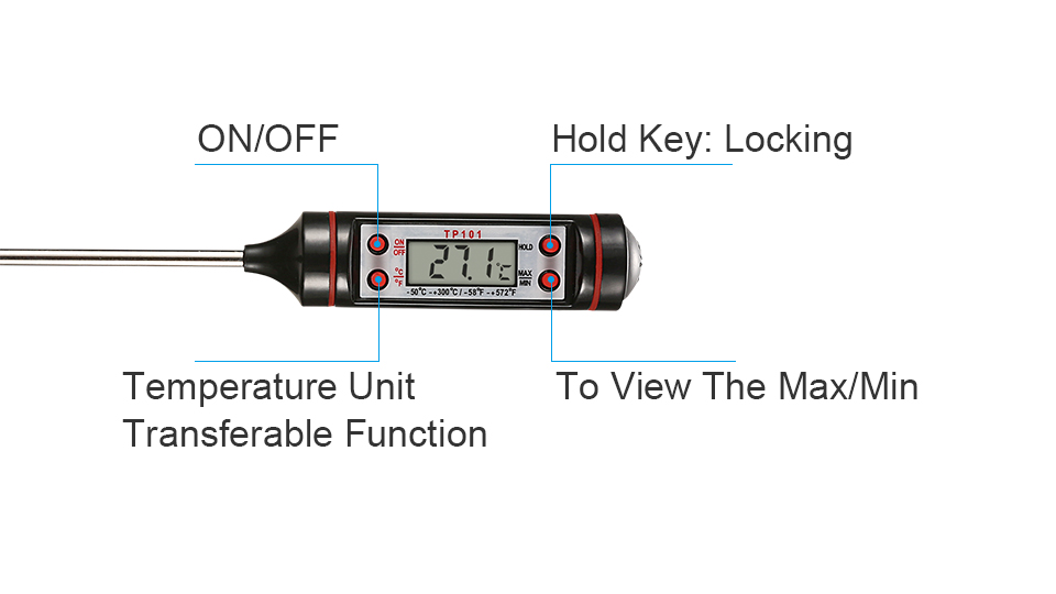 3.HOLD key : temperature conditions in the display, press the LCD display can be maintained at HOLD state,then a measurement of the recovery temperature to detect when running HOLD function, LCD display HOLD meet