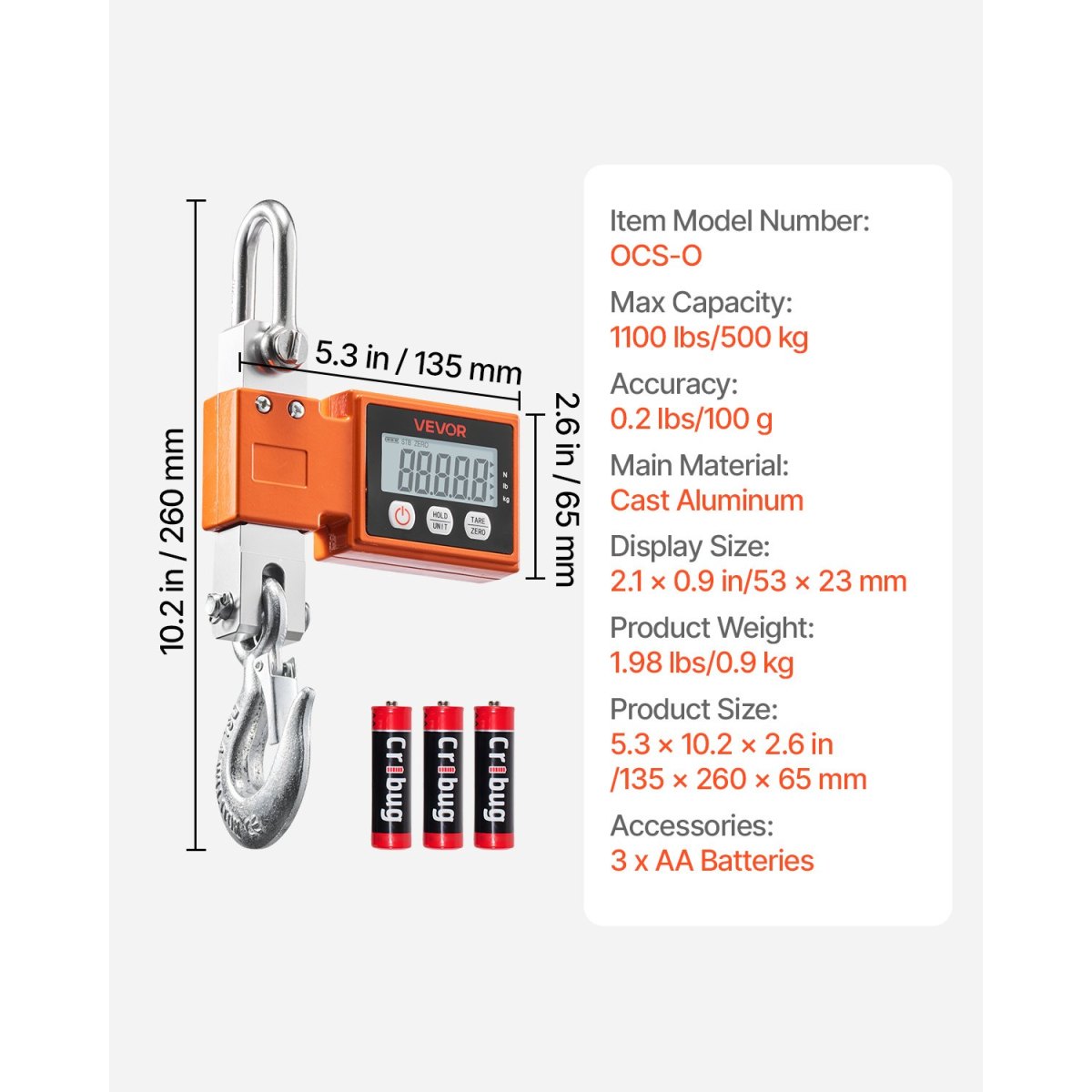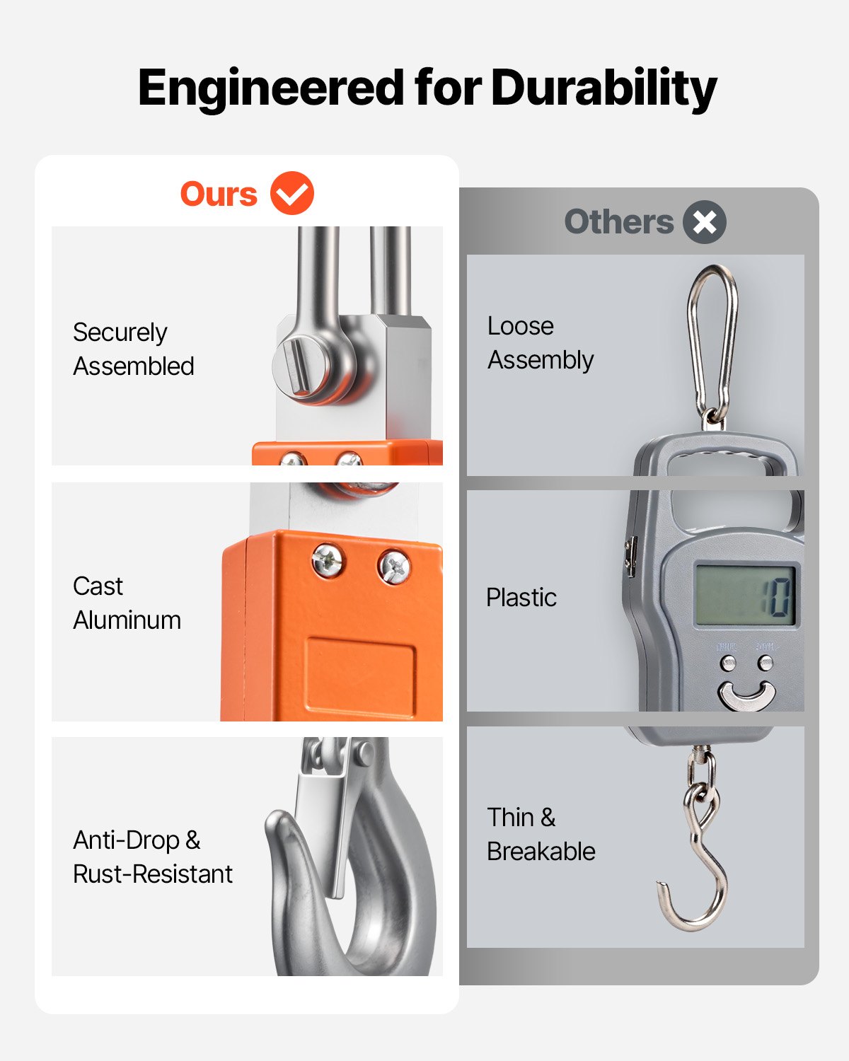 User-Friendly Features: This digital crane scale adds Peak Hold, Data Hold, Tare, Calibration, Overload Alert, and Auto-Off. The clear layout keeps setup quick and everyday operation easy