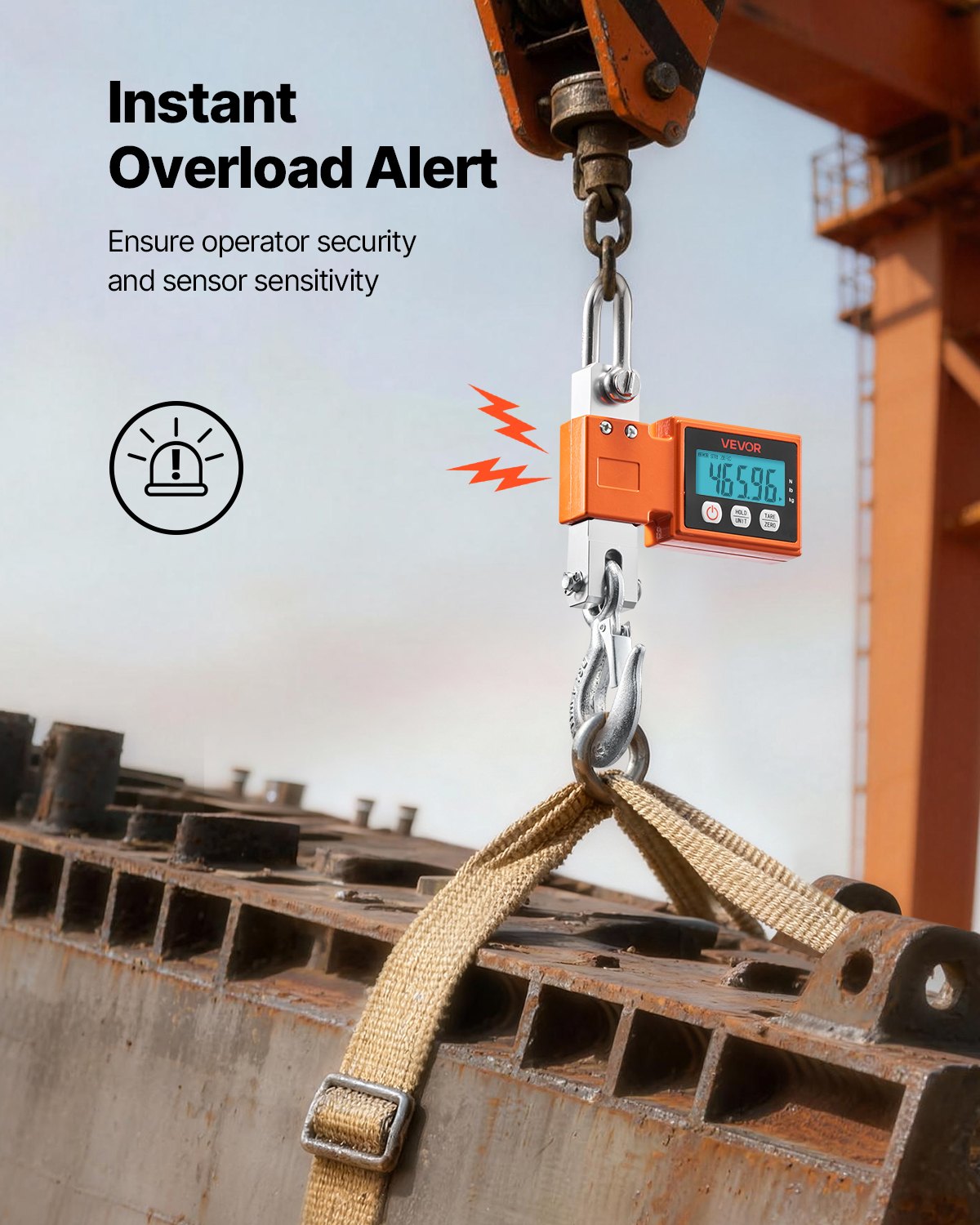Rugged & Anti-Release: This industrial hanging scale features a full cast-aluminum body for corrosion resistance in damp, dusty sites. A stainless shackle and anti-release steel hook help resist loosening or bending to keep loads secure