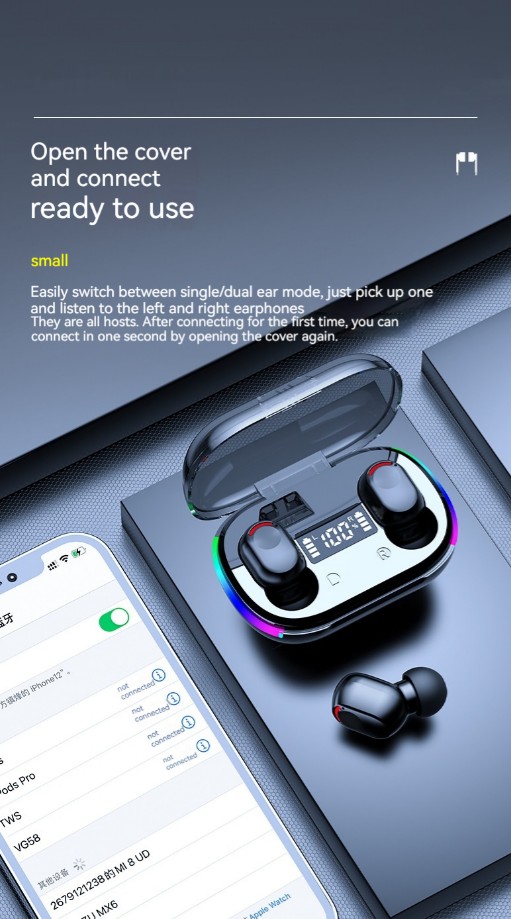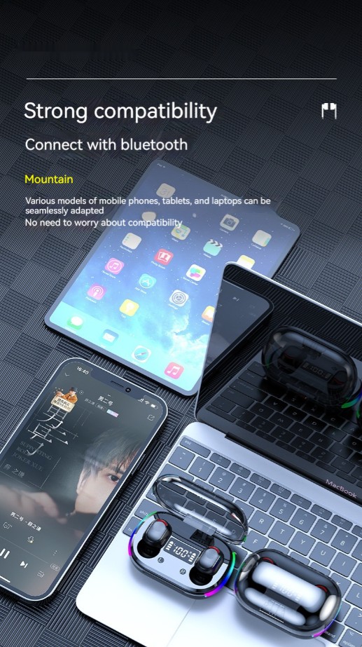 Functions: Waterproof, breathing light, super long service life battery, call function, NFC function, voice control, support for music, digital display, e-sports low latency