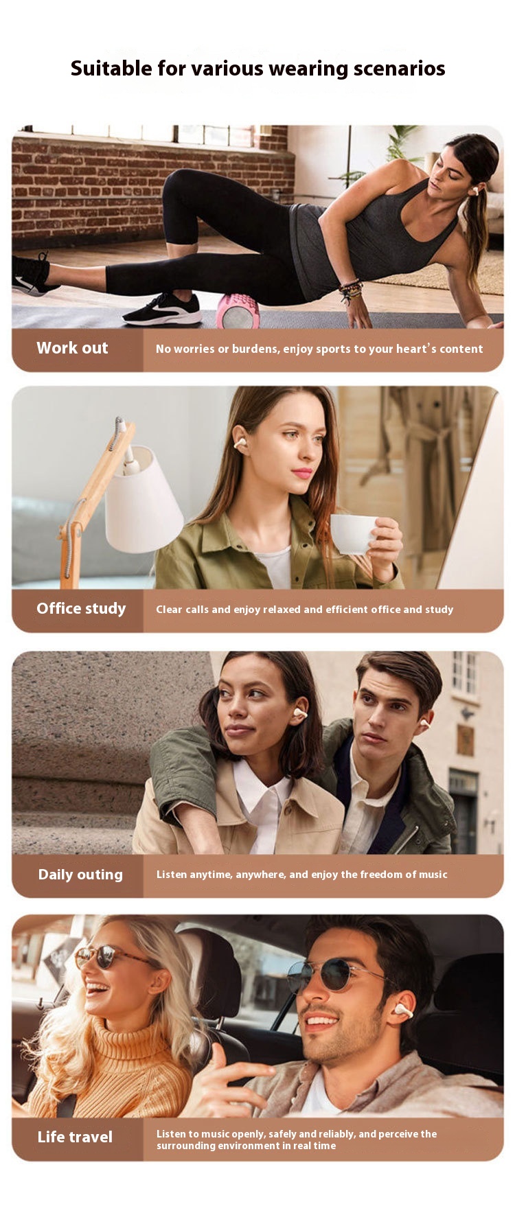 Digital Display Sports Non In-ear OWS Clip-on Bluetooth Headset
