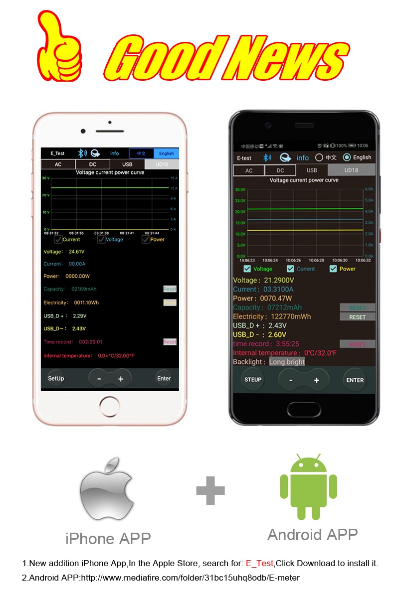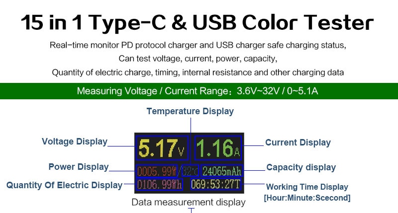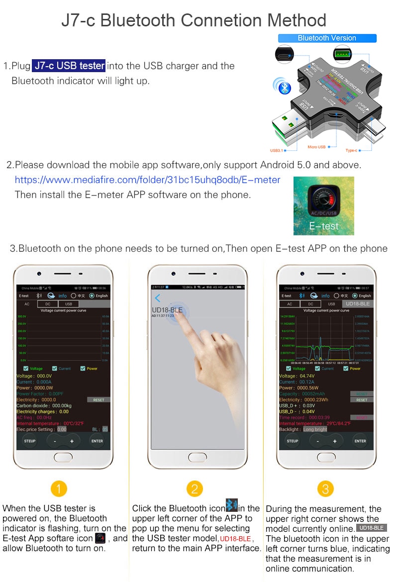 Specifications: Dual interface fast charge tester, built-in Bluetooth online dual interface fast charge tester