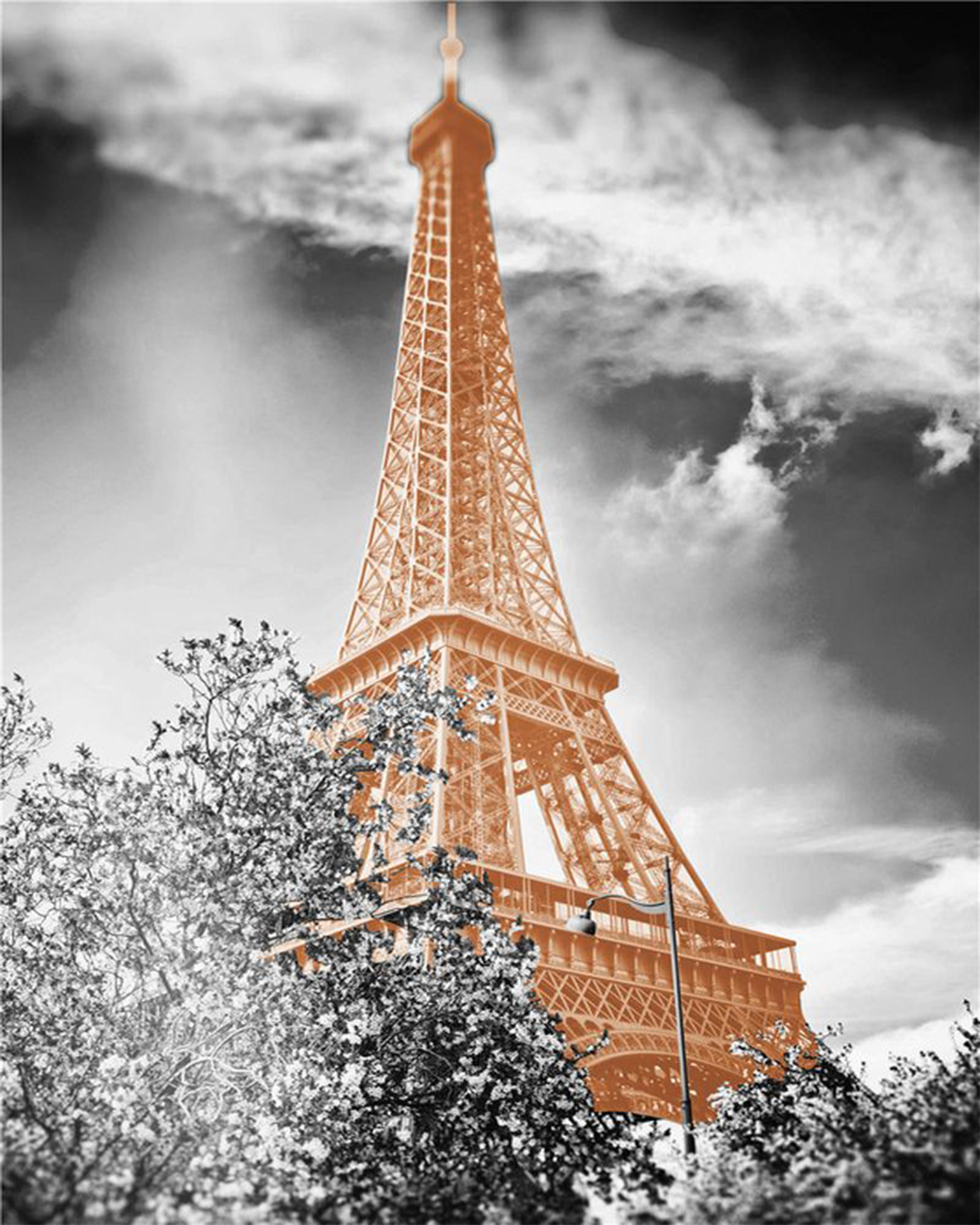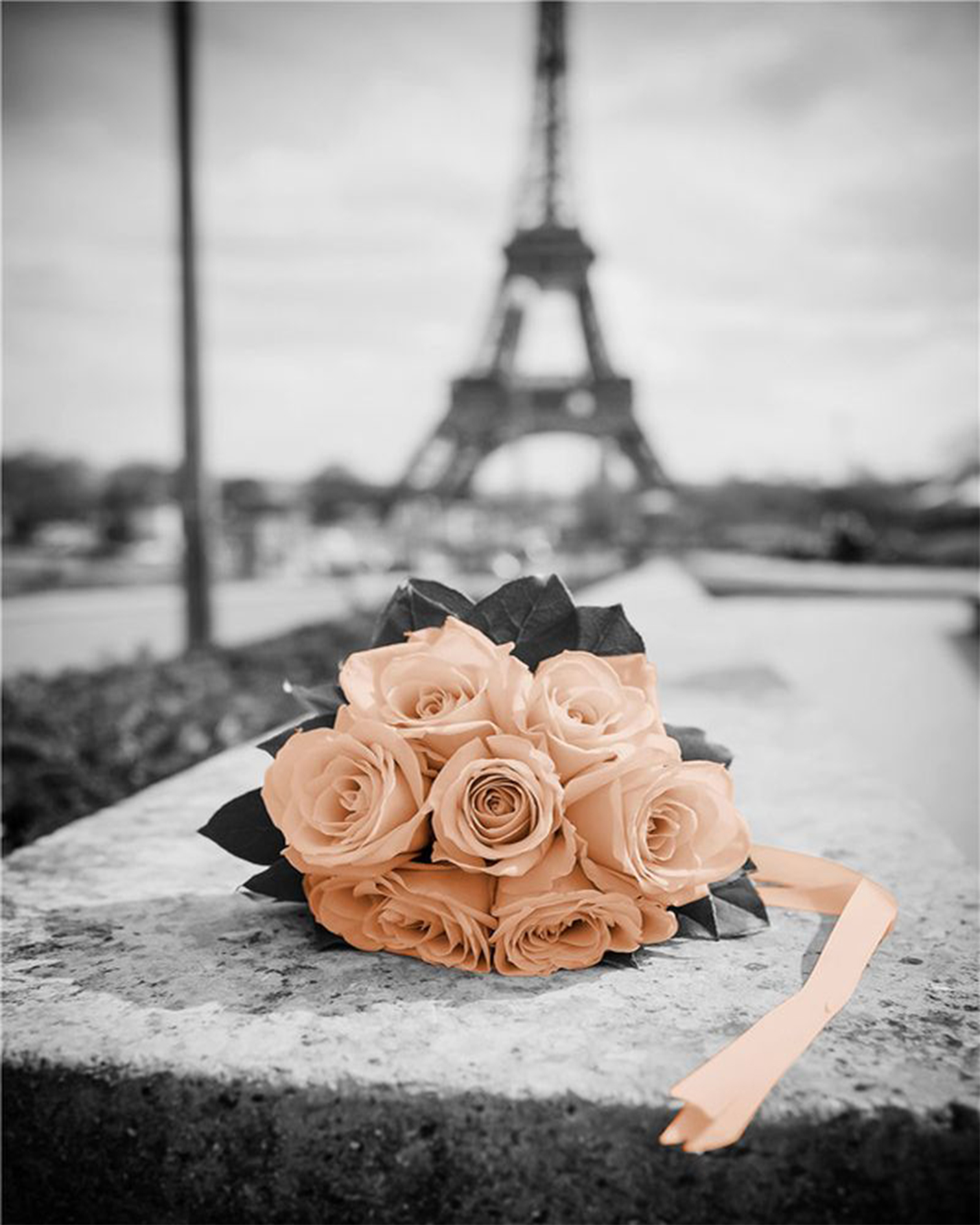 Digital Painting Of Paris Love Scene Eiffel Tower