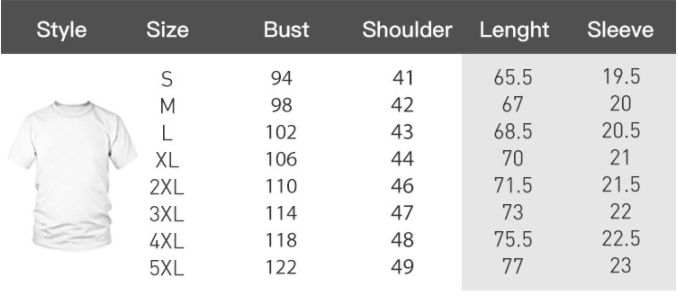 Size: S, M, L, XL, 2XL, 3XL, 4XL, 5XL, 6XL