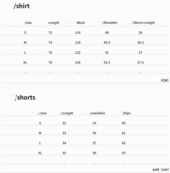 Color: suit, shirt, shorts