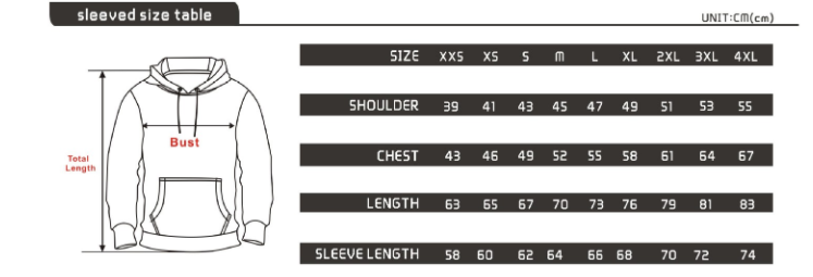 Sizes: XXS,XS,S,M,L,XL,XXL,XXXL,4XL
