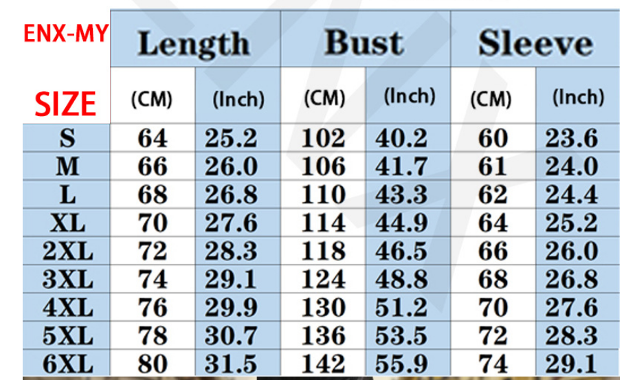 Size: XXS, XS, S, M, L, XL, XXL, XXXL, XXXXL, 4XL, 5XL, 6XL