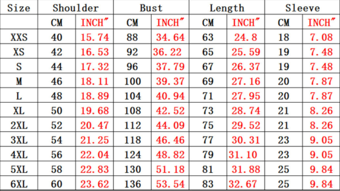 Size: XXS, XS, S, M, L, XL, 2XL, 3XL, 4XL, 5XL