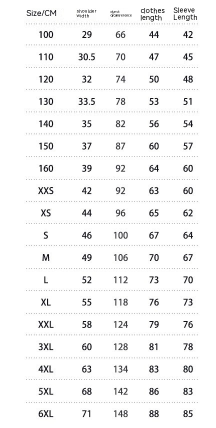 Size: XXS,XS,S,M,L,XL,2XL,3XL,4XL,5XL,6XL
