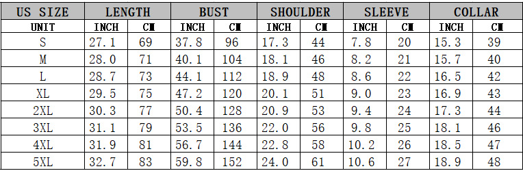 Size:M,L,XL,XXL,XXXL,XXXXL,5XL