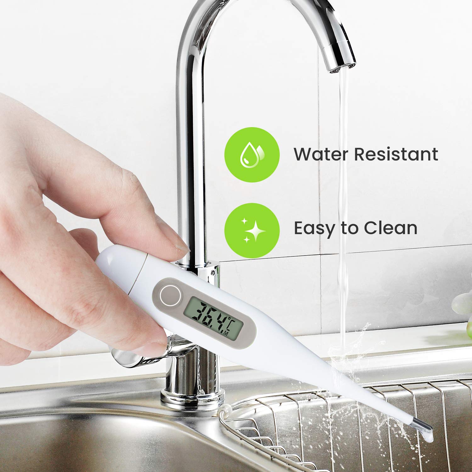 Femometer Digital thermometer with LCD screen. You can use it for oral, armpit, and rectal test for kids, adults and babies.