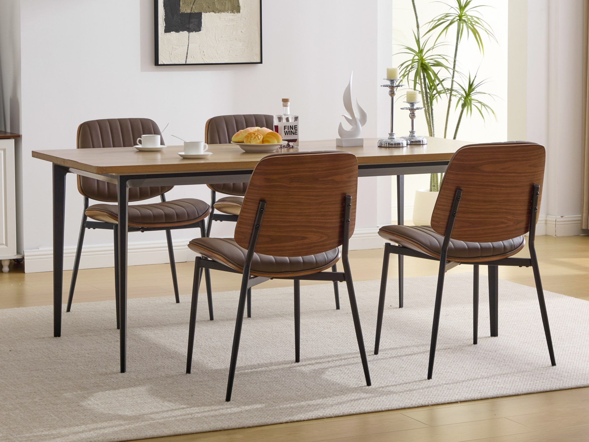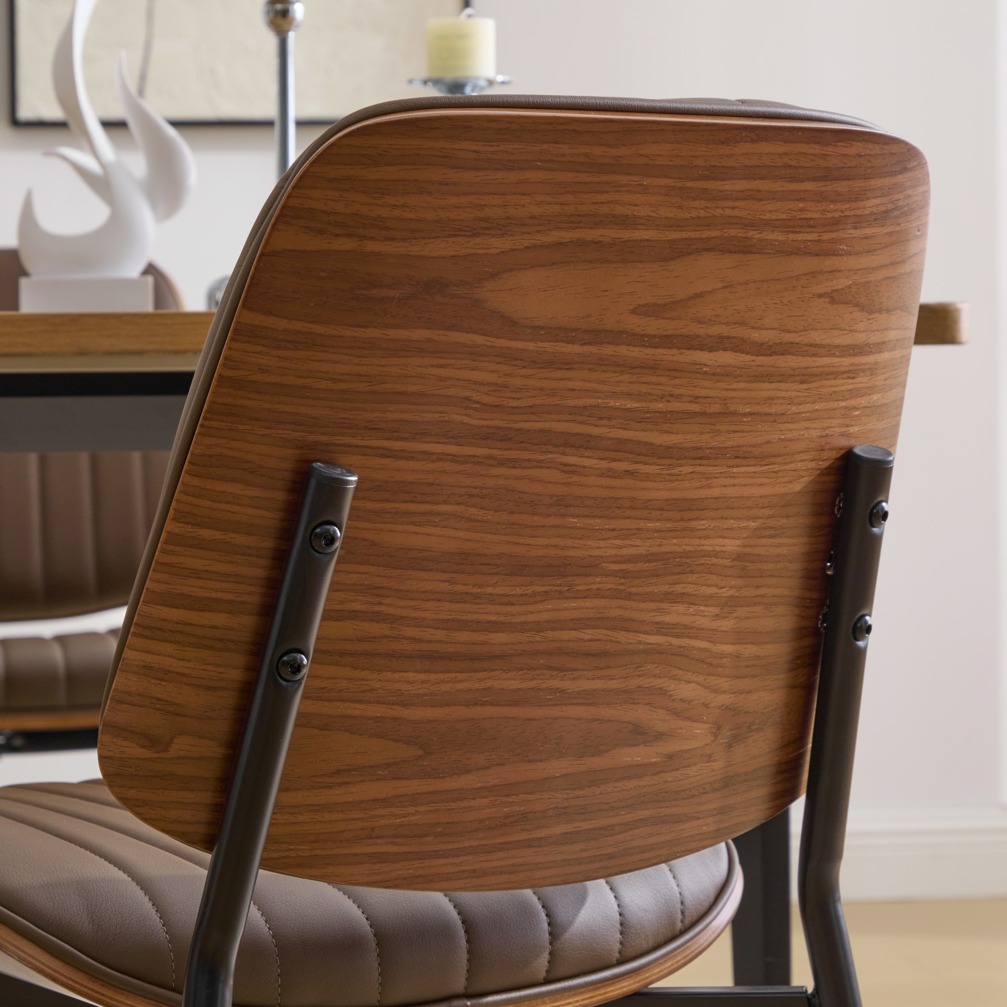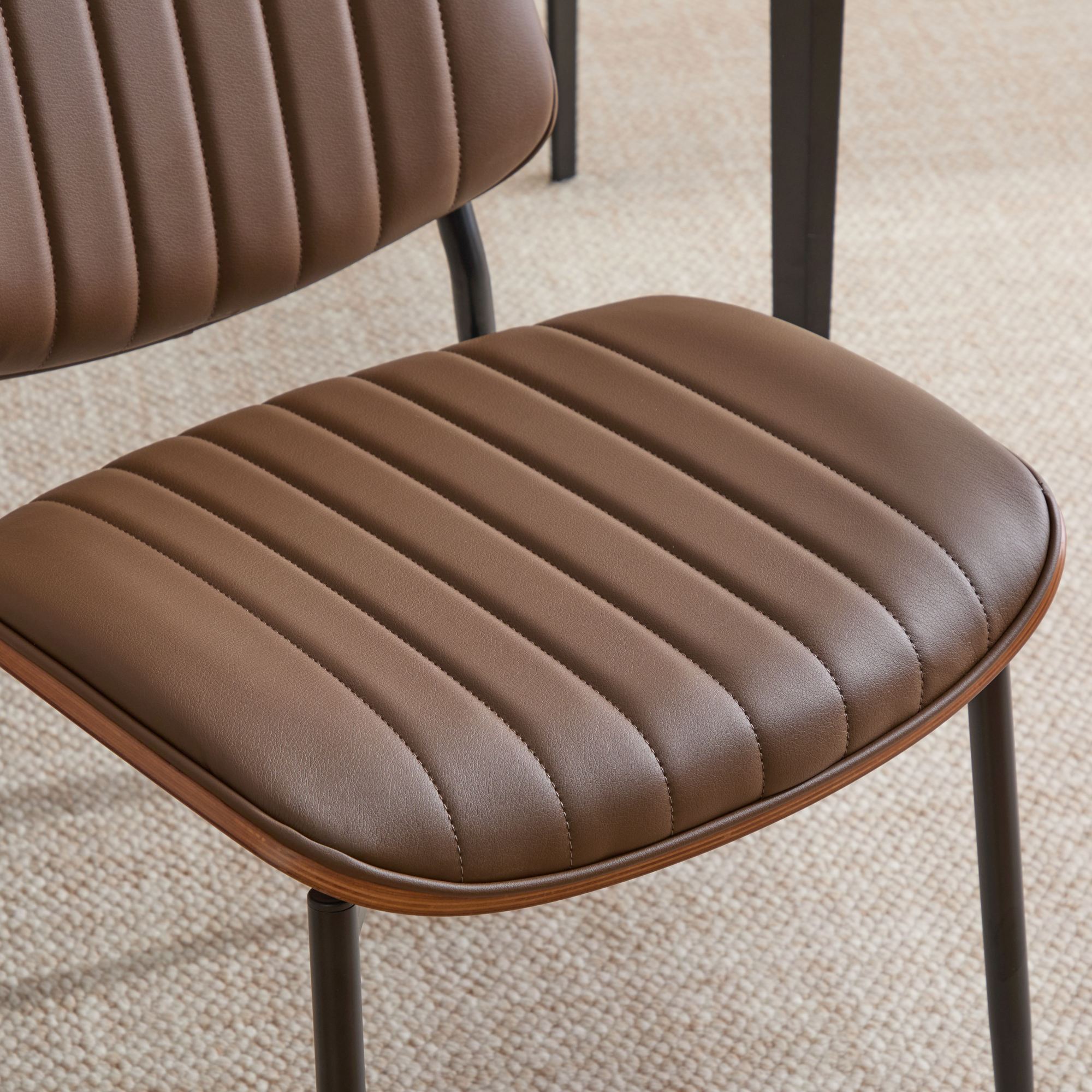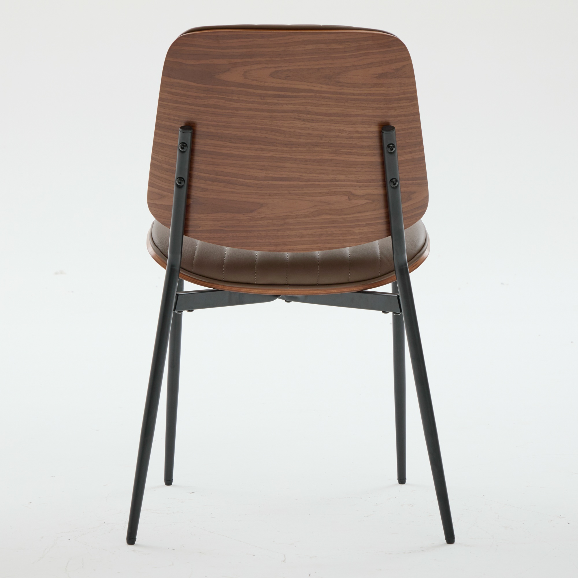 Product Name:Dining Chairs Set of 2 Mid Century Modern Retro Faux Leather Chair with Walnut Bentwood Back Upholstered Seat Metal Legs Adjustable Foot for Kitchen Dining Room Chairs(Brown PU),SW1849BR