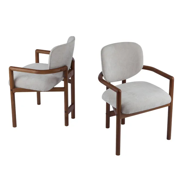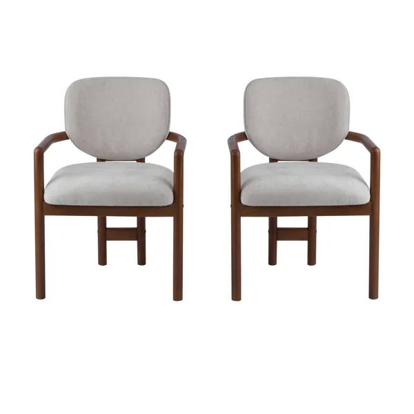 Dining Chairs Set Of 2 Upholstered Arm Chairs, Rubber Wood Accent Chairs Beige Fabric Seating, 300 LBS Weight Capacity