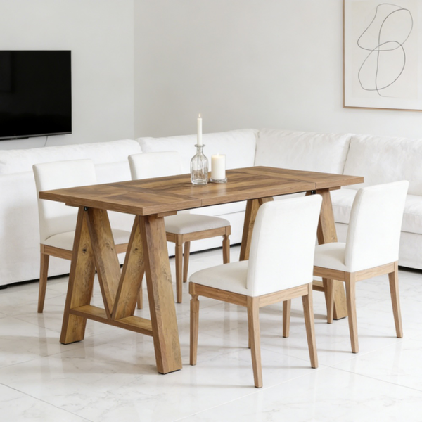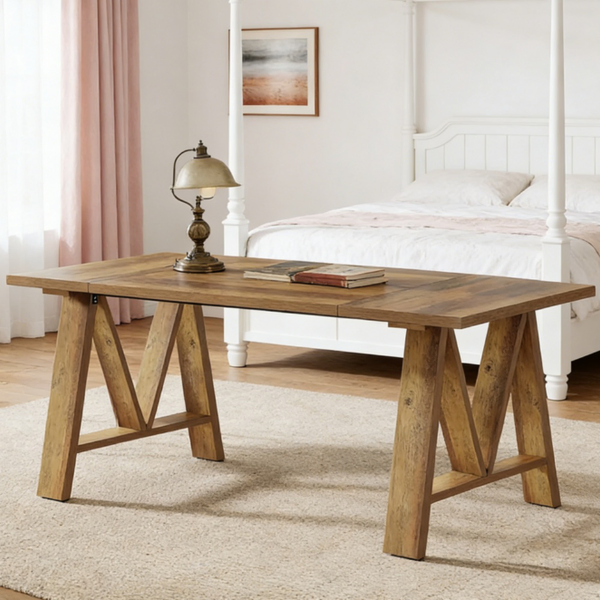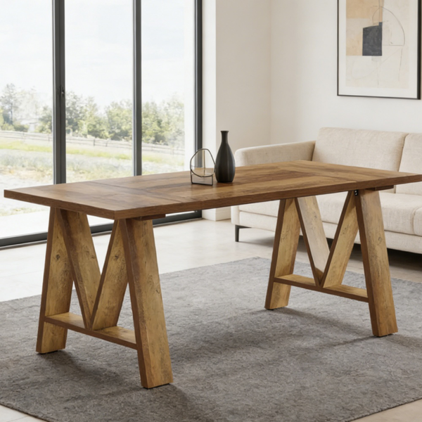 Durable Construction - This farmhouse dining table is made from sturdy particleboard and designed to withstand the demands of everyday use. The uniquely designed legs give added stability, ensuring long-lasting sturdiness and functionality.