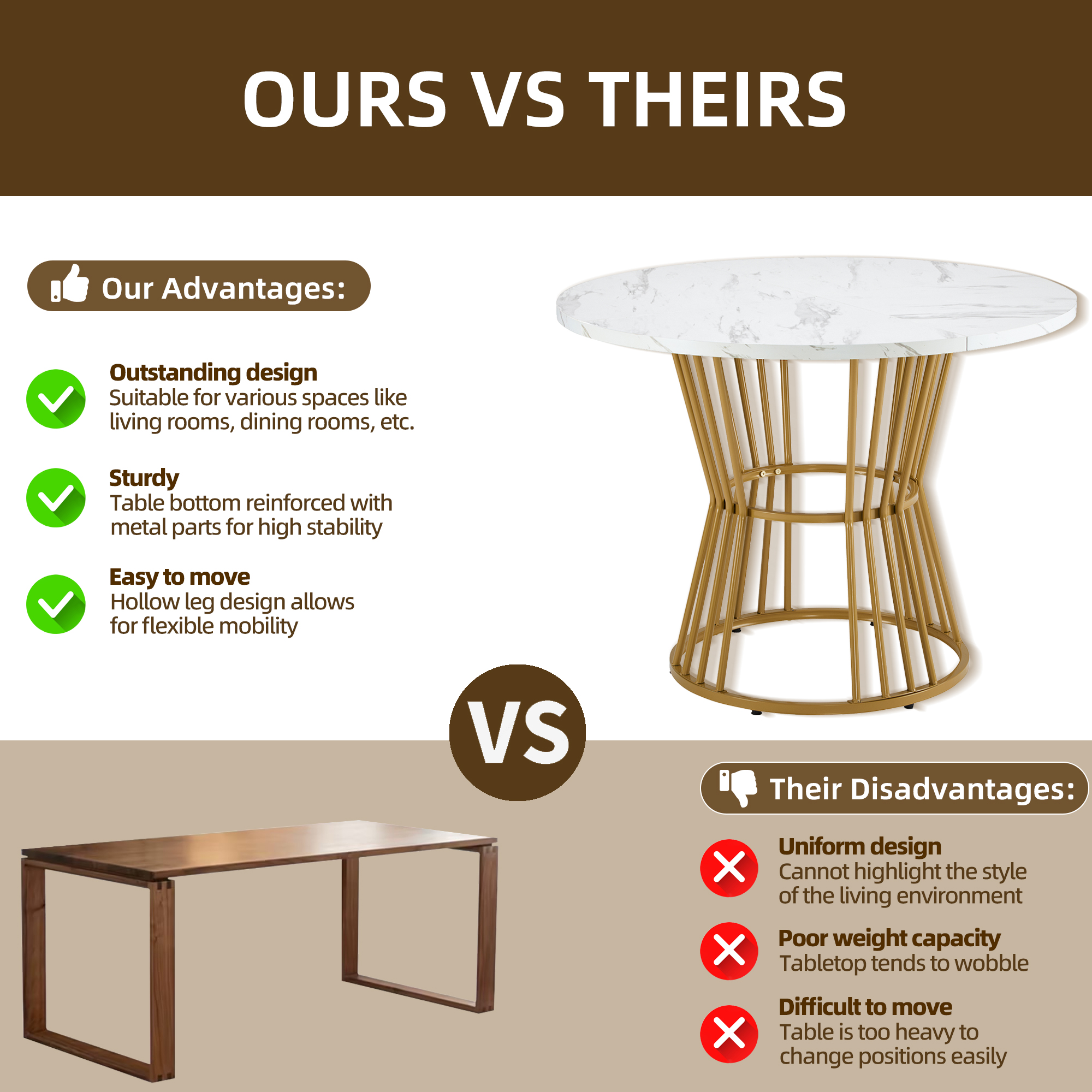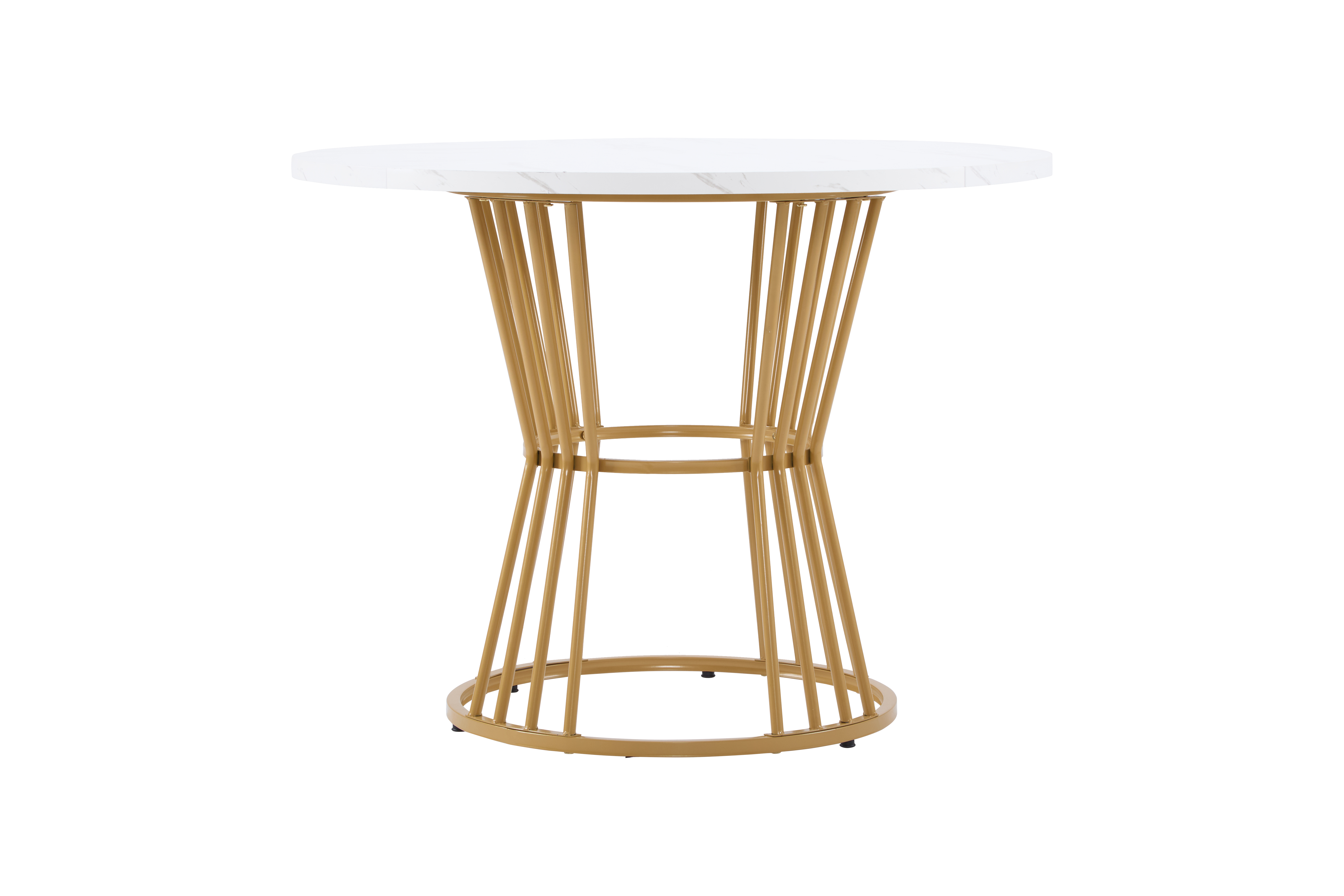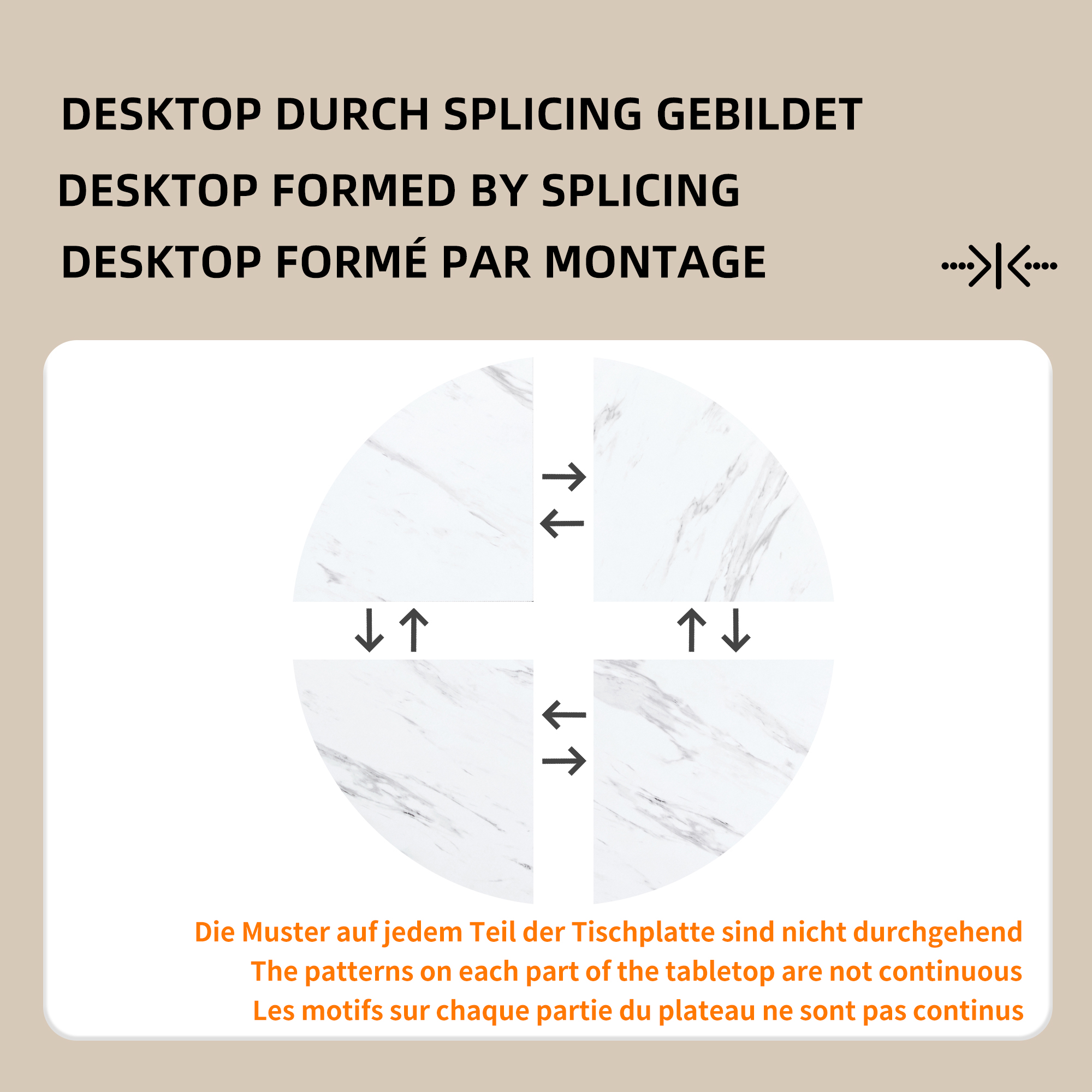 Product Name:Dining table set (5-piece), dining table set with 4 chairs, kitchen table set, round dining table with 100 cm diameter and golden metal legs, white MDF table top, gray velvet dining chairs