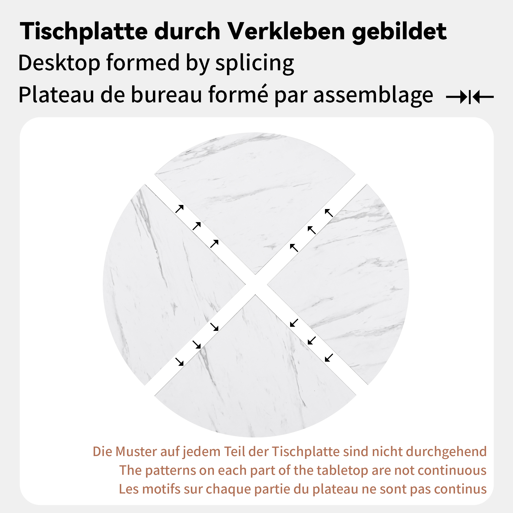 • Modern, simple round table made of MDF material with marble structure veneer. The centrepiece of this dining table and chair combination is a round dining table with a table top made of MDF covered with a veneer with a fine marble structure. Displays a simple but elegant beauty. The MDF material is strong and durable, and the marble-textured veneer gives the desk top a richer texture and layering.