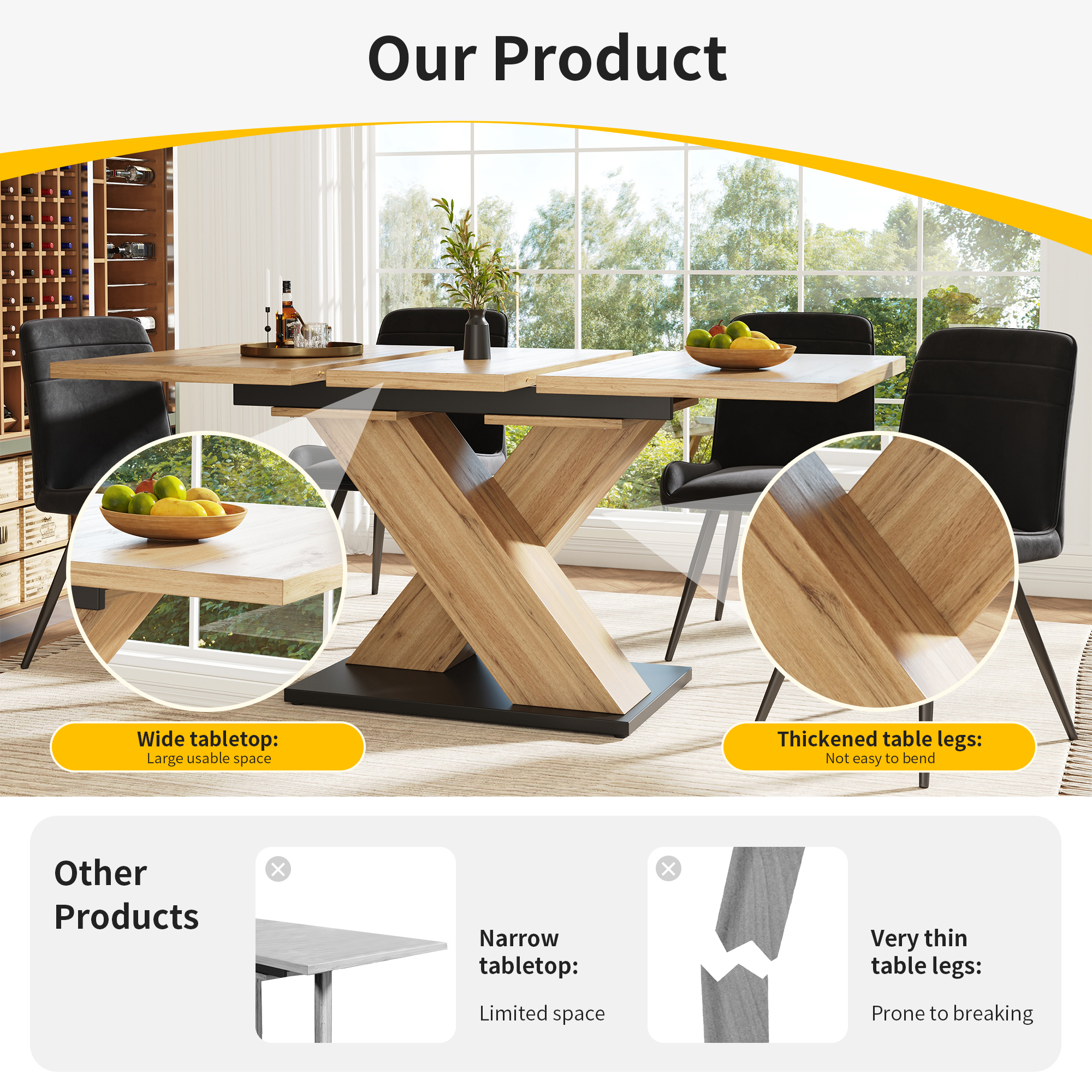 Clever design, simple and exquisite when closed, saving space, and expanding to become spacious and atmospheric, meeting the needs of parties. Selected high-quality MDF material, sturdy and durable, with strong bearing capacity, and equipped with smooth guide rails for easy operation and silent expansion.