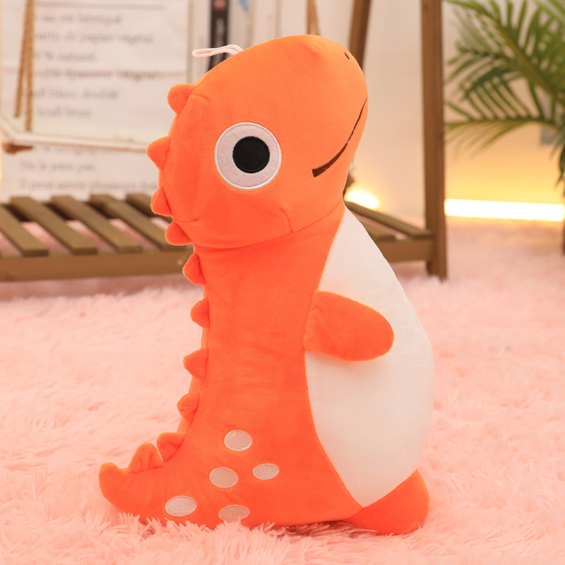 Name: Three dinosaursFabric: Crystal super softFilling: DD cotton.Color: Green / Pink / OrangeSize: 30, 40, 50CM