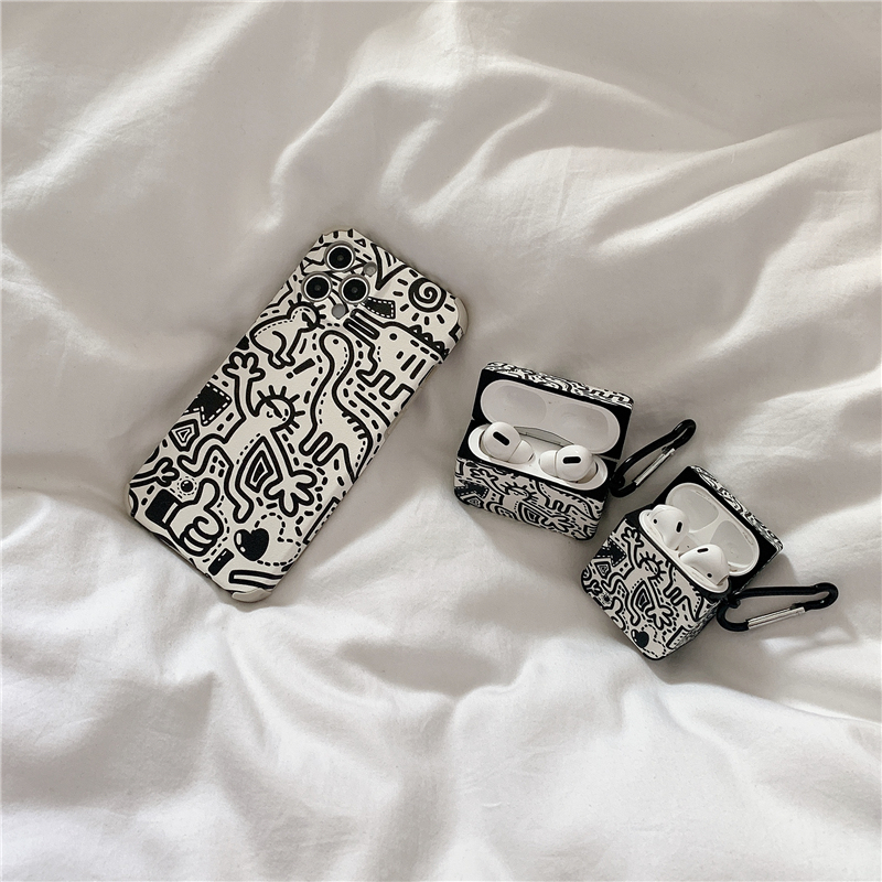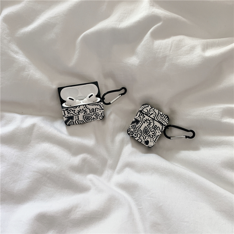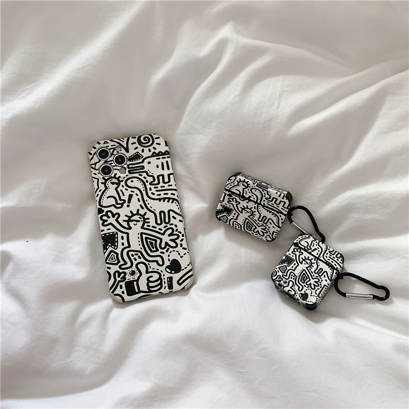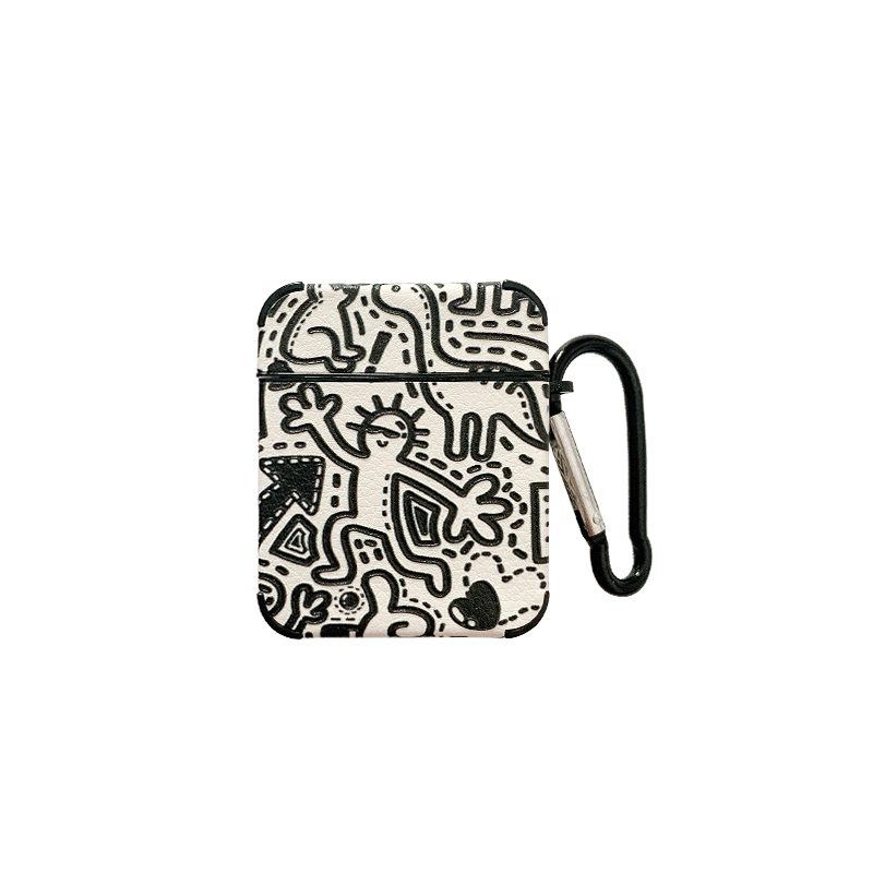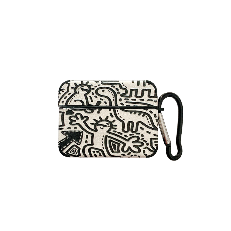 Black Line Graffiti Cartoon AirPods1/2 Generation Headphone Cover + Hanging Ring Dinosaur Drawing Hand AirPods Pro Headphone Cover + Hanging Dinosaur Drawing Hand