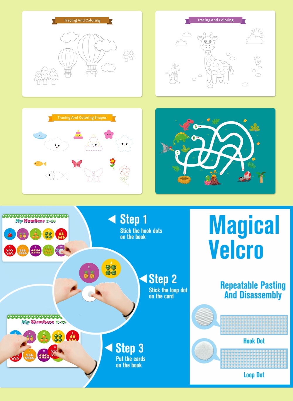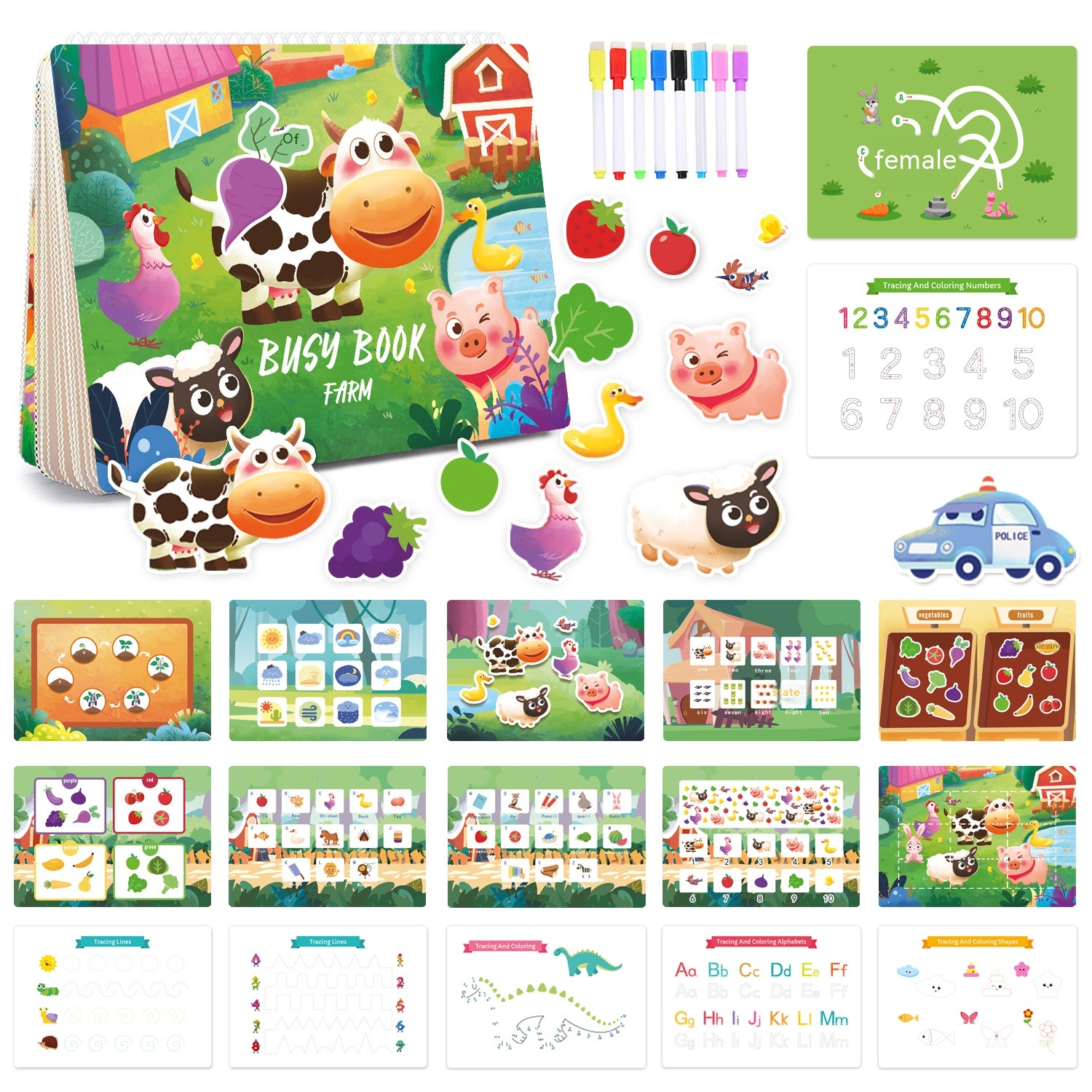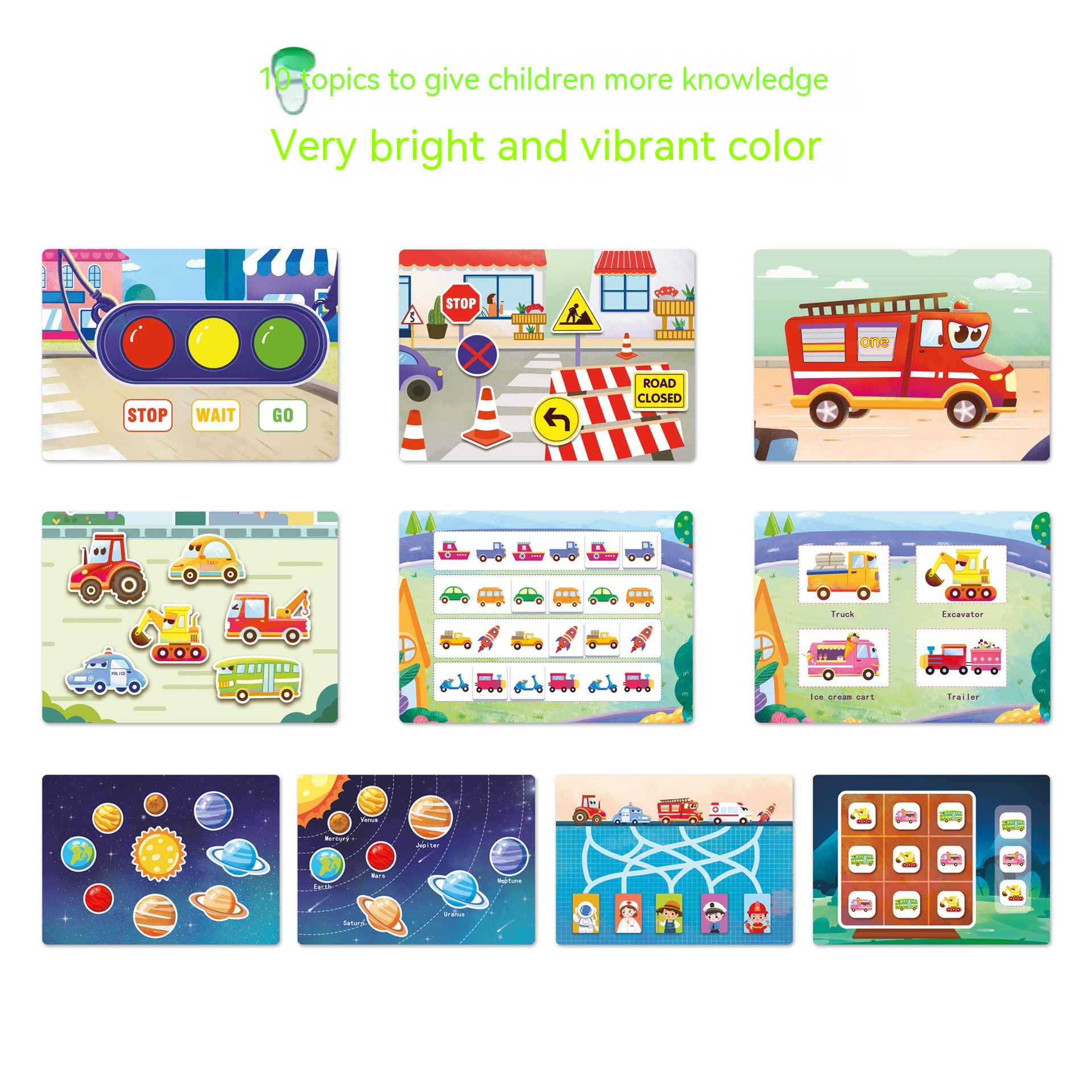 Color: Dinosaur theme-busy book, traffic theme-busy book, farm theme-busy book, Life theme-busy book