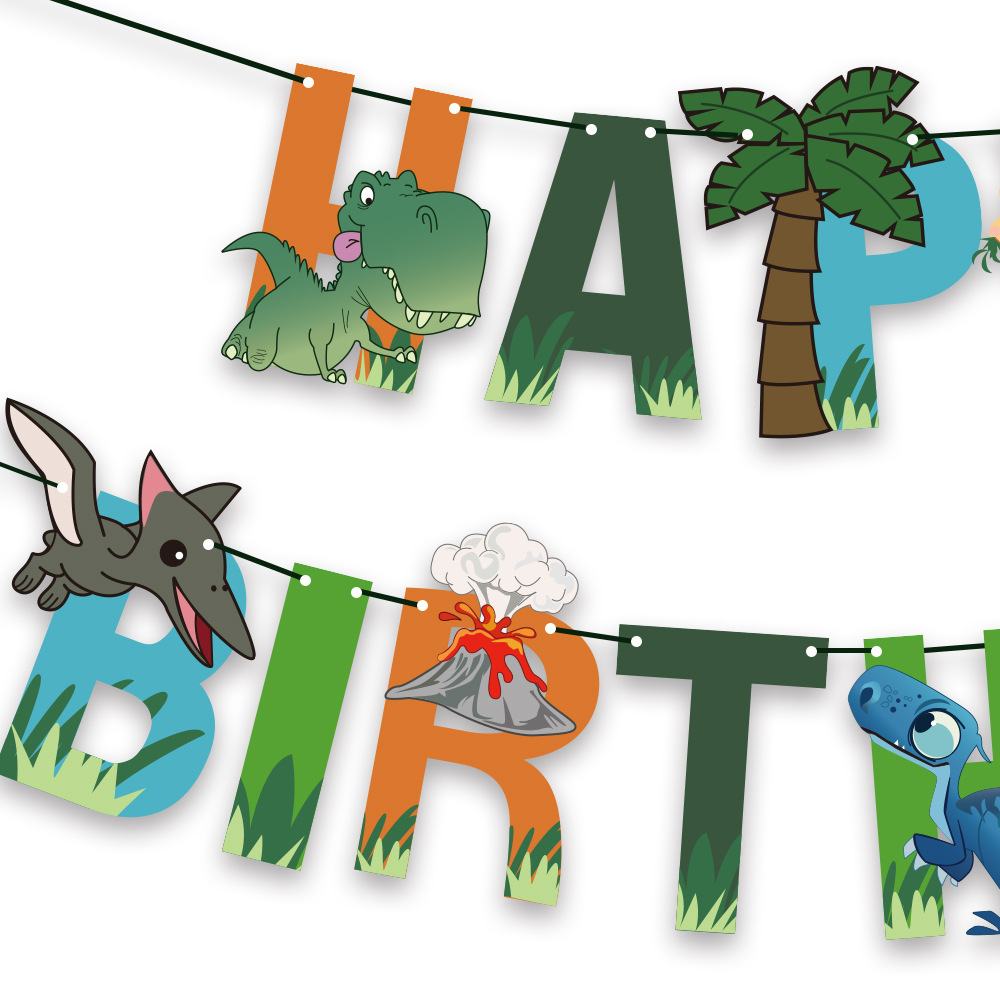 Dinosaur Theme Party Decoration Dinosaur Latex Balloon Pull Flag Set Birthday Letter Banner Cartoon Animal