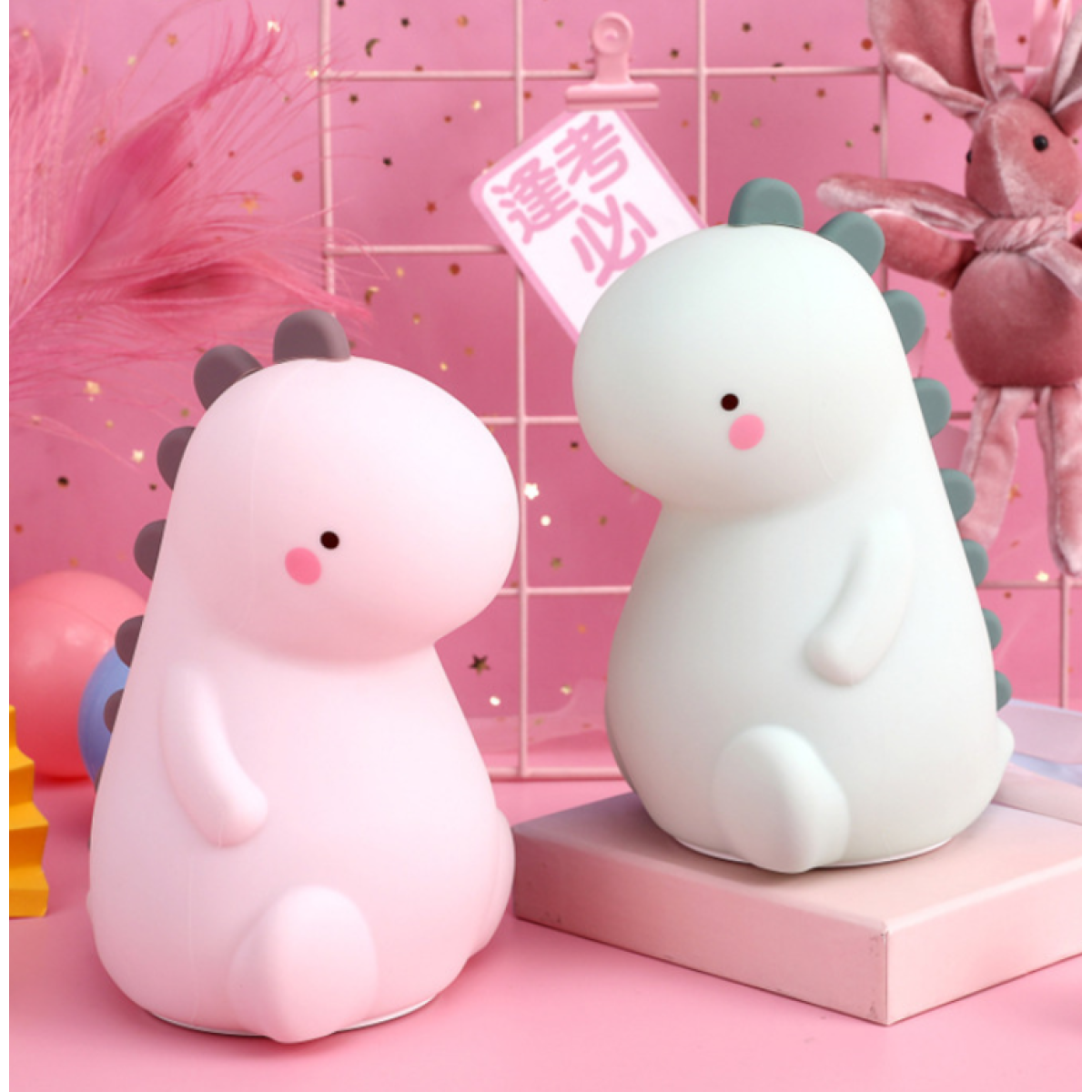 Light color: pink dinosaur (white light + colorful light), green dinosaur (white light + colorful light)