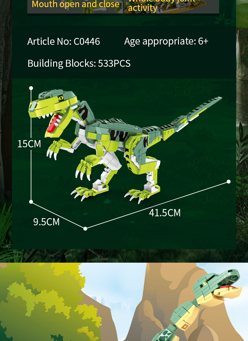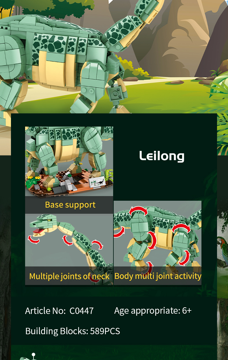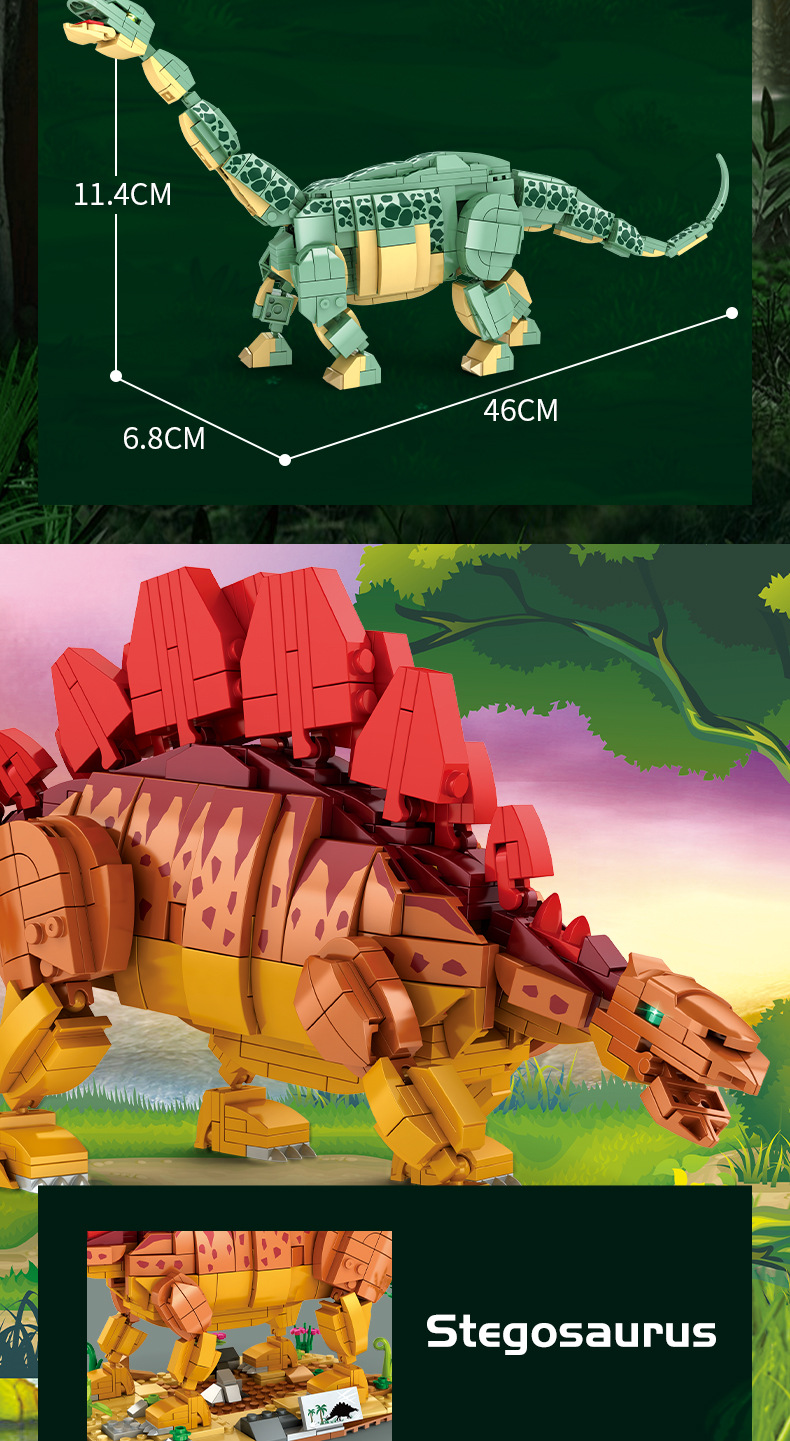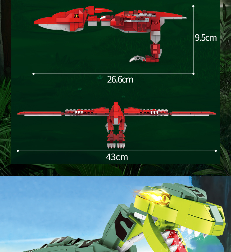 Color: C0445 Pterosaur (English packaging), C0446 Velociraptor (English packaging), C0447 Brachiosaurus (English packaging), C0448 Stegosaurus (English packaging), C0449 Spinosaurus (English packaging), C0452 Tyrannosaurus Rex (English packaging)