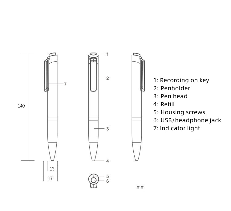 ● One key saving function. Recording quality: WAV 512Kbps (default)