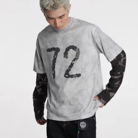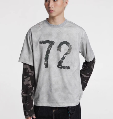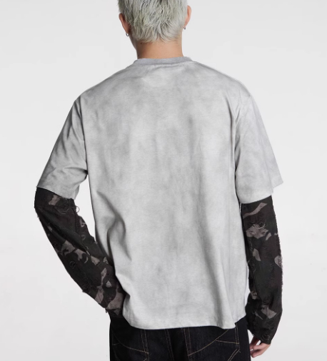 Dirty Dyed Camouflage Fake Two-piece Long Sleeve Base