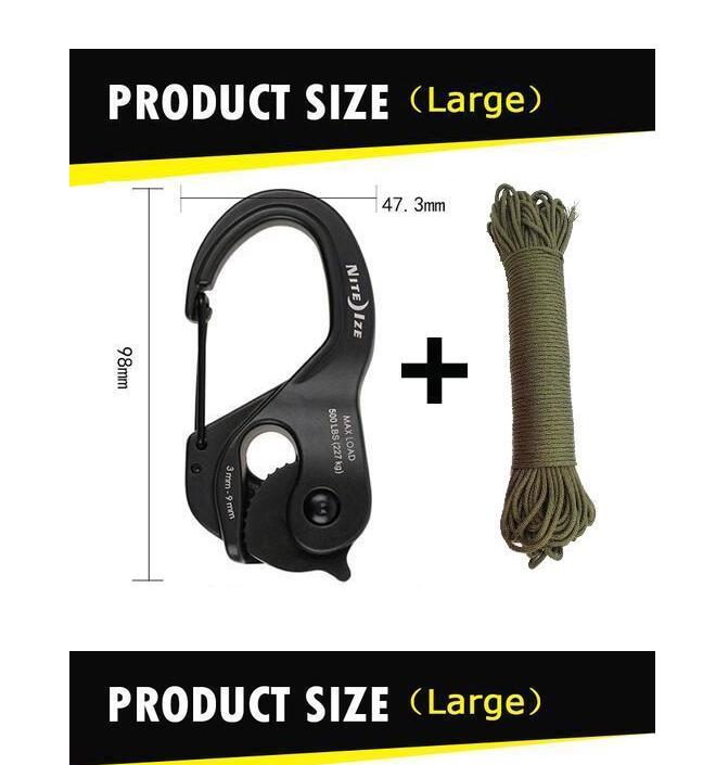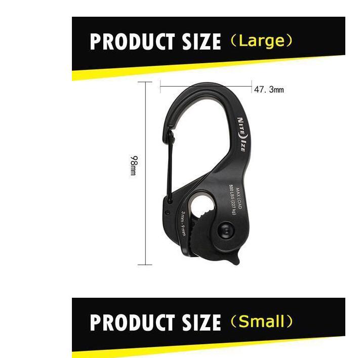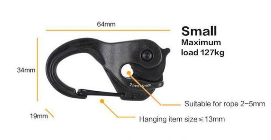 Suitable for rope size: 2-5 mm (small) / 2 - 9.5 mm (large).
